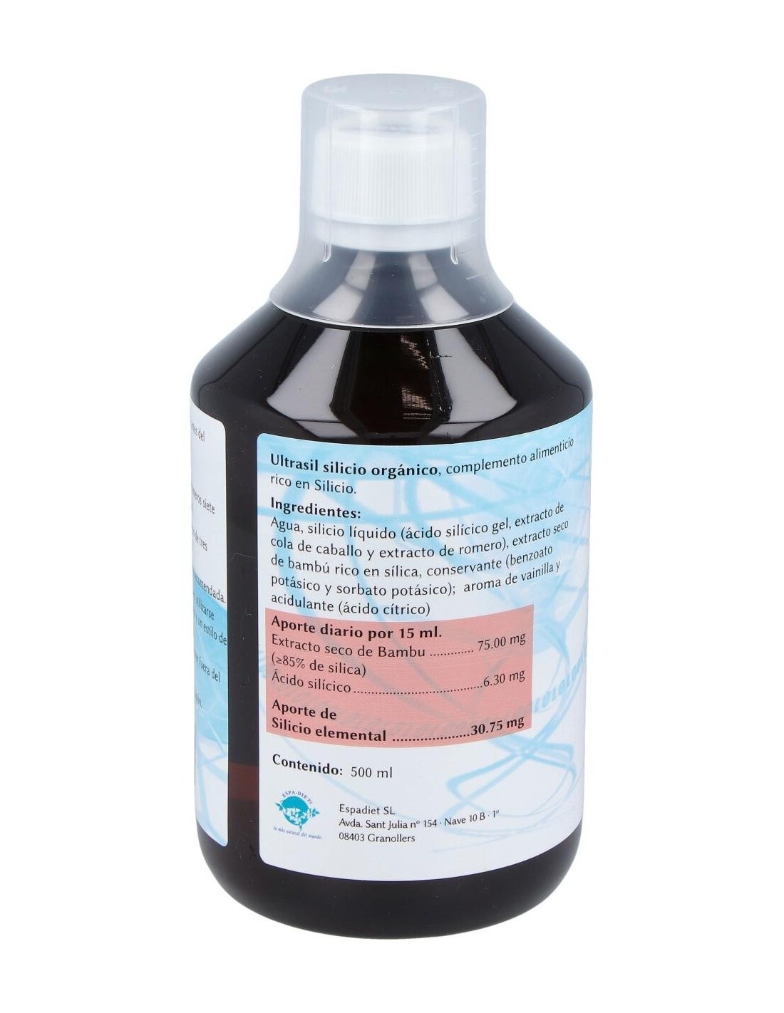 Ultra Sil Silicio Orgánico 500Ml. de Espadiet proporciona una opción accesible para quienes desean complementar su ingesta de silicio con un formato líquido práctico y fácil de usar.