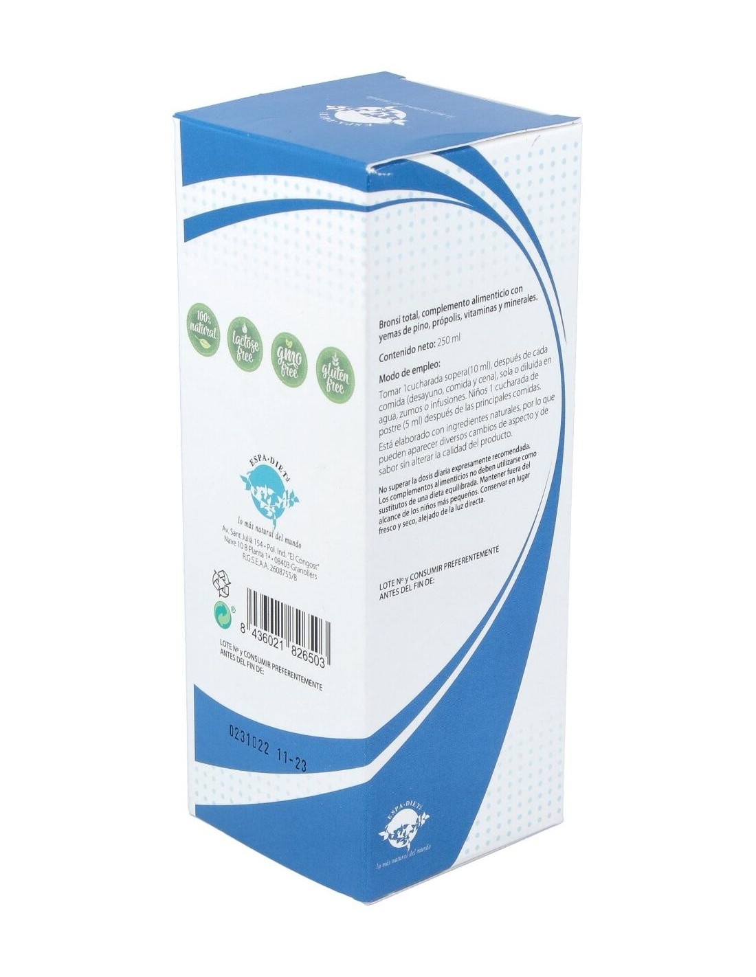 ESPADIETEl Bronsi Total Jarabe 250Ml. de Espadiet es un complemento natural para personas que buscan aliviar molestias respiratorias, formulado con ingredientes que apoyan la función bronquial y respiratoria.