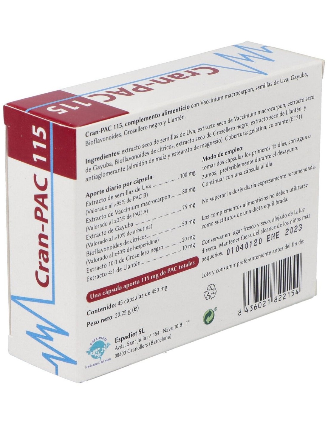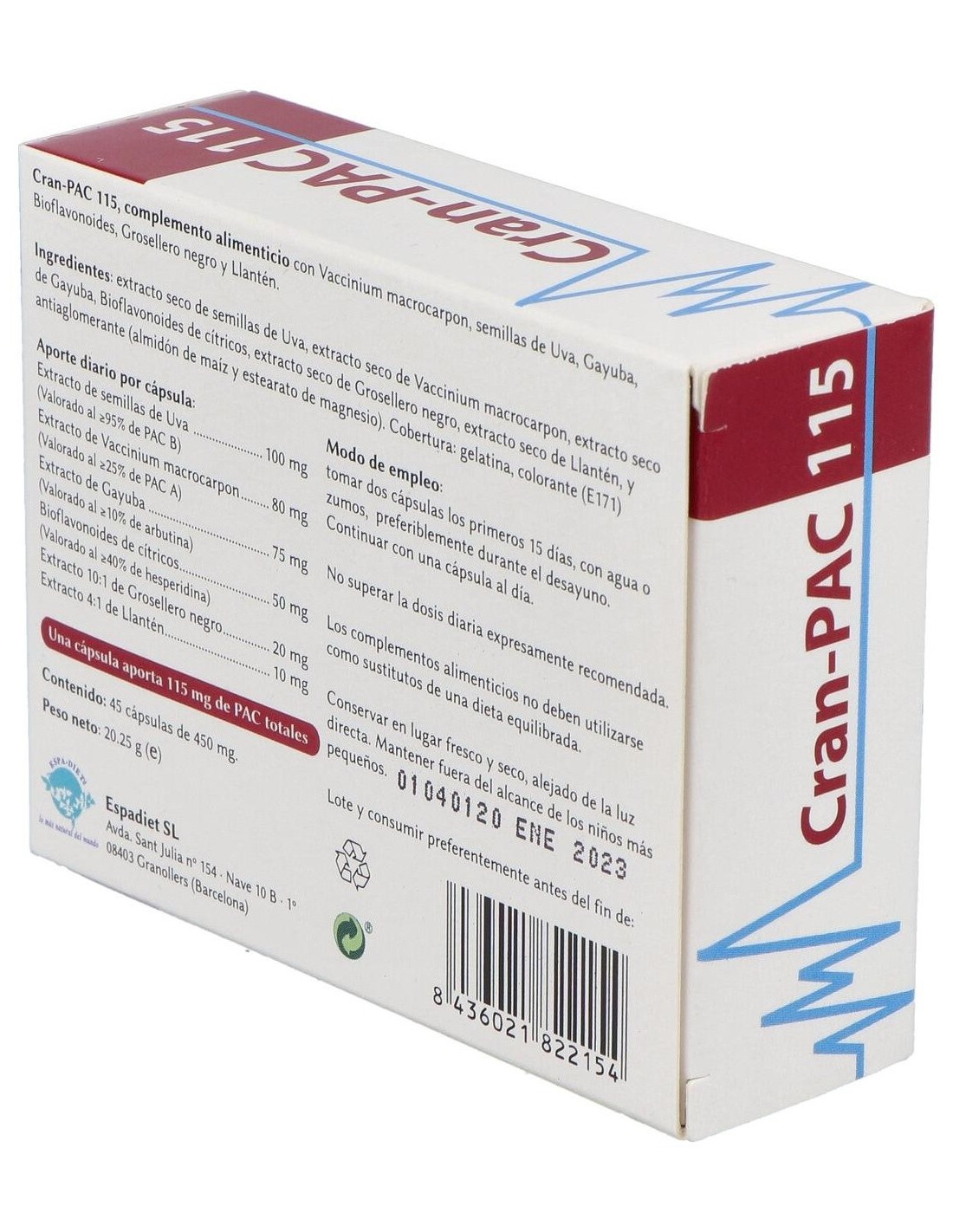 ESPADIETEl Cran-Pac 115 45Cap. de Espadiet es un suplemento dirigido a adultos que busca apoyar el bienestar diario mediante ingredientes naturales seleccionados para contribuir al equilibrio corporal.