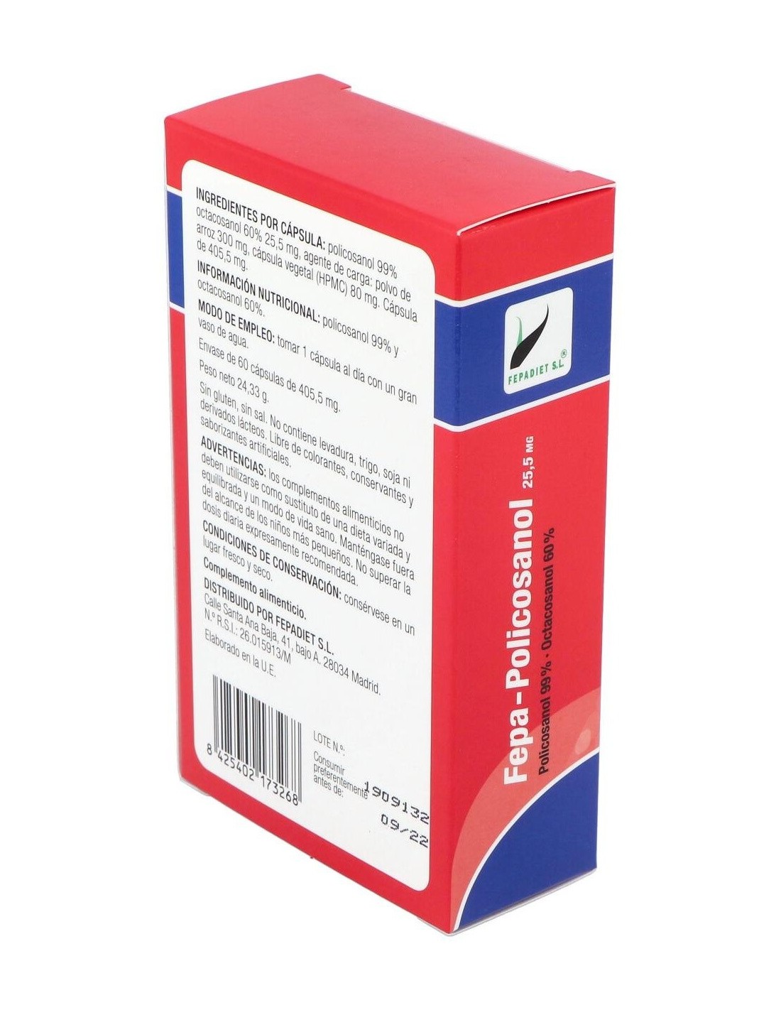El producto está elaborado bajo controles de calidad que garantizan la pureza y concentración del policosanol. Su diseño en cápsulas permite una dosificación cómoda y práctica, ideal para quienes prefieren suplementos en formato sólido. Fepa-Policosanol 60Cap. de Fepadiet se presenta en un envase compacto que protege el contenido de la humedad y la luz.