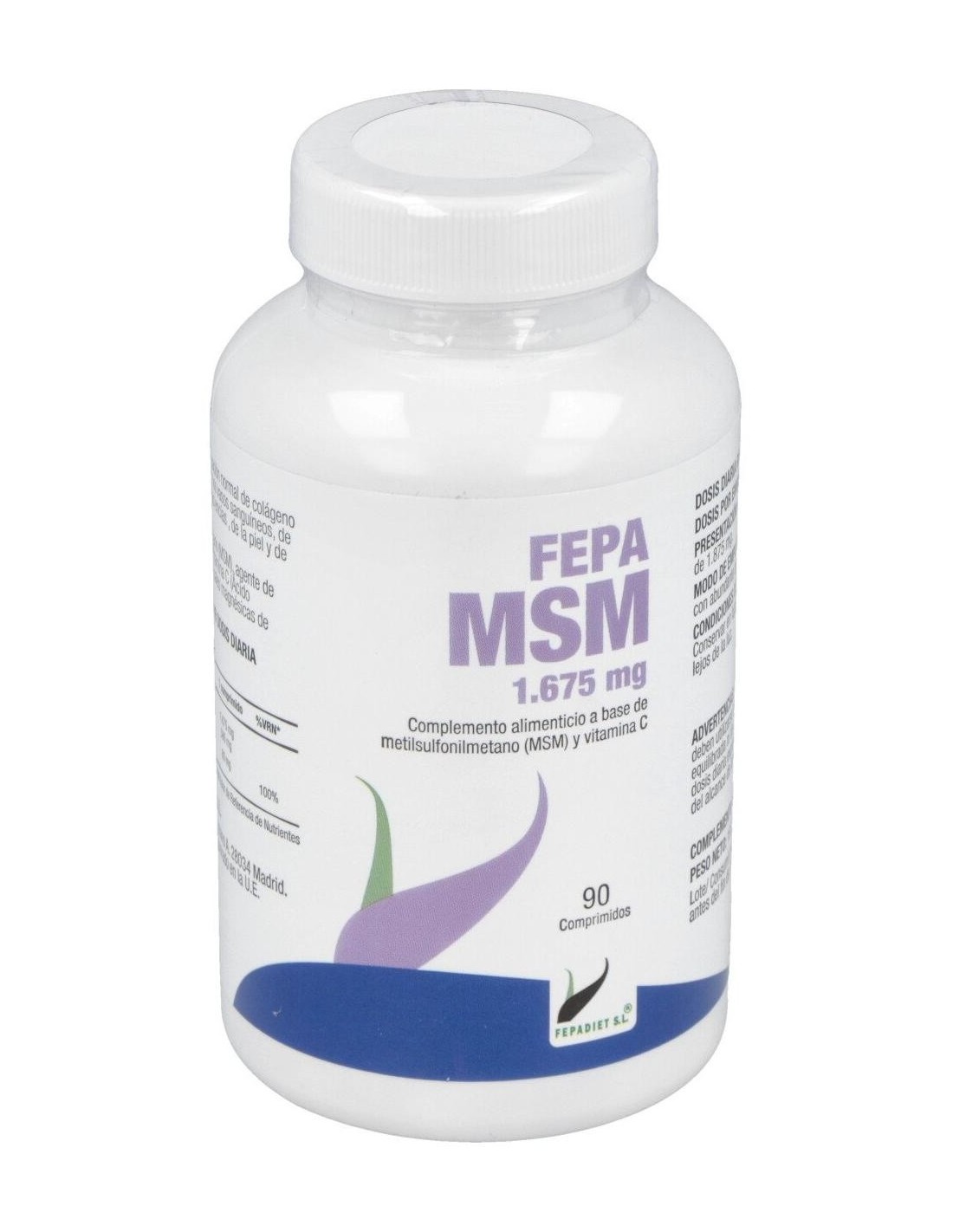 FEPADIETComplemento alimenticio a base de metilsulfonilmetano (MSM) y vitamina C. La vitamina C contribuye a la formación normal de colágeno para el funcionamiento normal de los vasos sanguíneos, de los huesos, de los cartílagos, de las encías , de la piel y de los dientes.