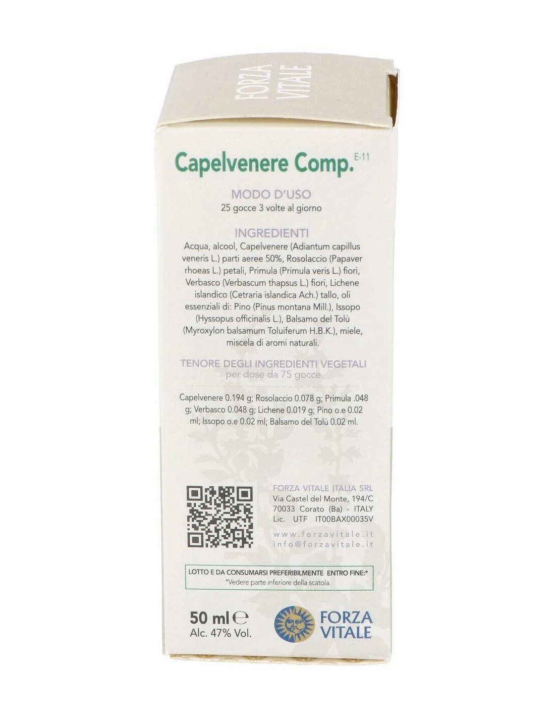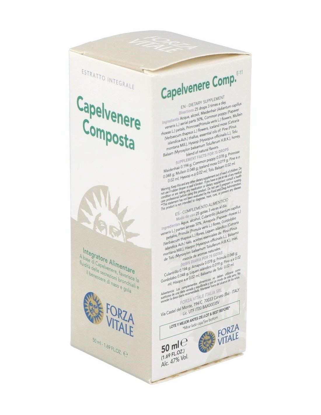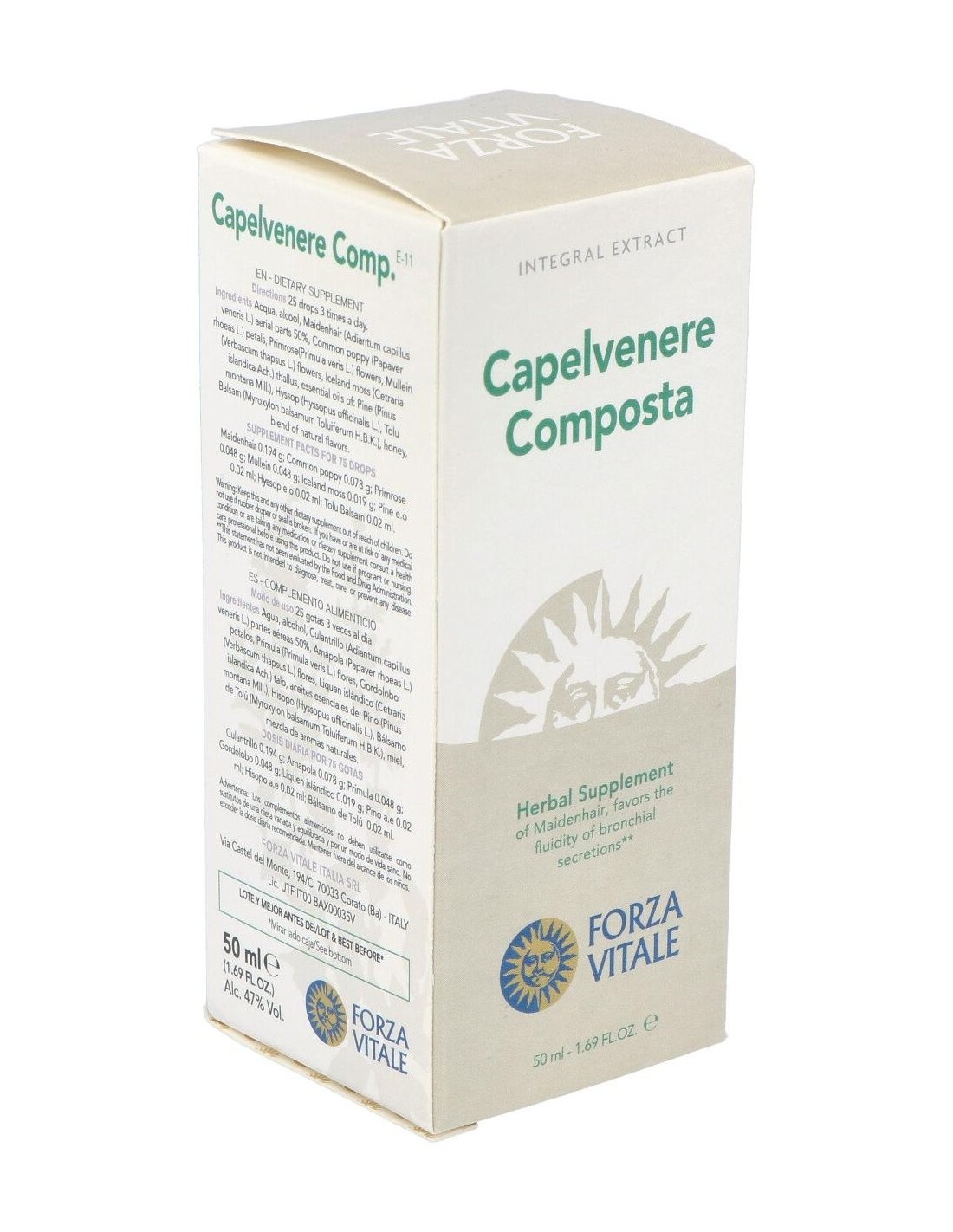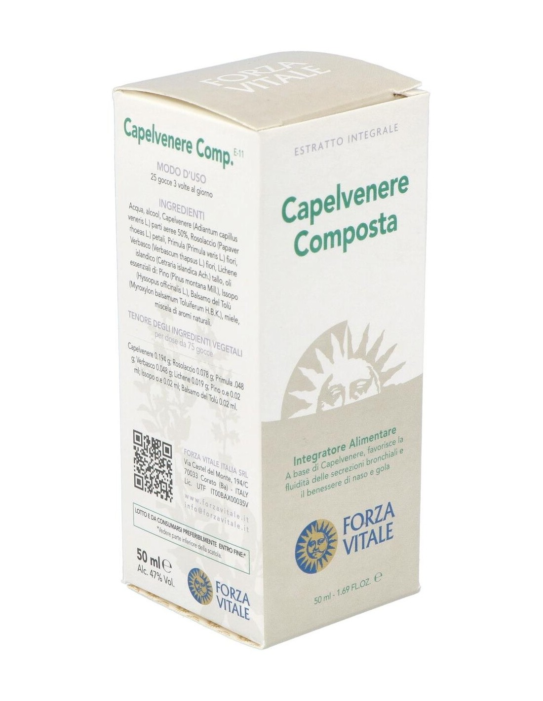 FORZA VITALEEl Capelvenere Composto Extracto 50Ml. de Forza Vitale es un complemento natural para personas que buscan apoyo en su bienestar diario, formulado con extractos vegetales concentrados para facilitar su integración en la rutina.