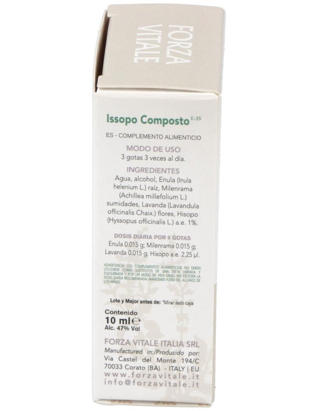 FORZA VITALEÚtil para favorecer el fisiológico bienestar de los bronquios. ISSOPO COMPOSTO (estaño) metal espagirico 10ml.