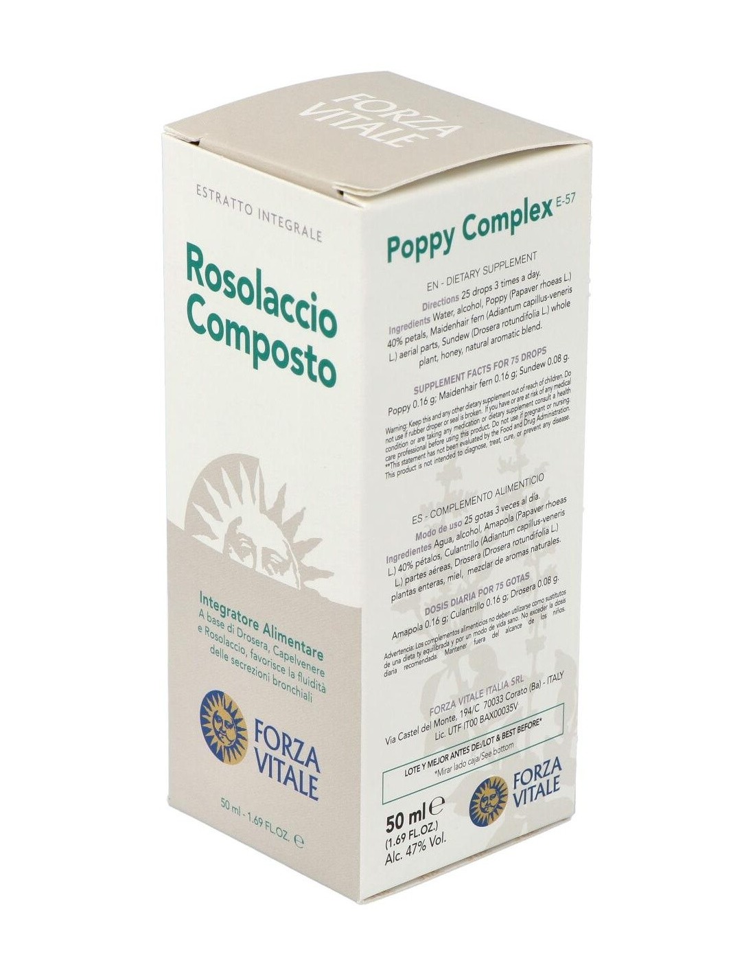 FORZA VITALEEl Rosolaccio Composto Extracto 50Ml. de Forza Vitale es un suplemento natural para personas que buscan apoyo en su bienestar diario, formulado con extractos vegetales que contribuyen a la vitalidad general.