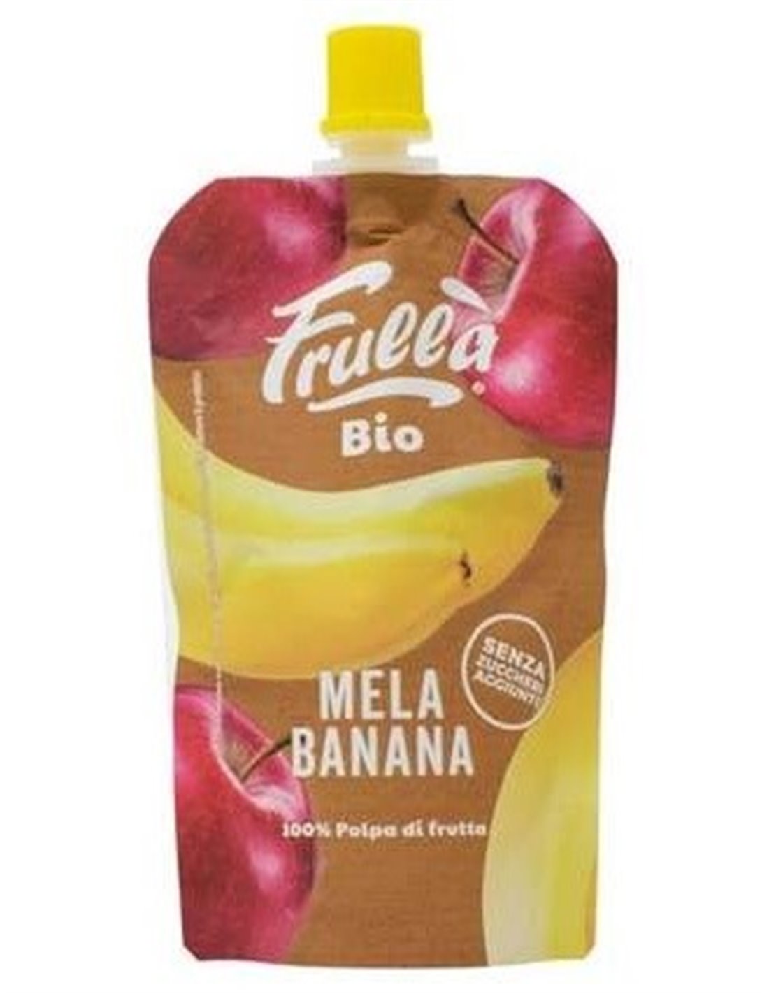 FRULLAPulpa de manzana mezclada con puré de plátano, elaborada con frutas seleccionadas y genuinas de cultivo ecológico, sin conservantes ni azúcares añadidos. Envasado en cómodas bandejas de aluminio de 100g, completamente reciclable.