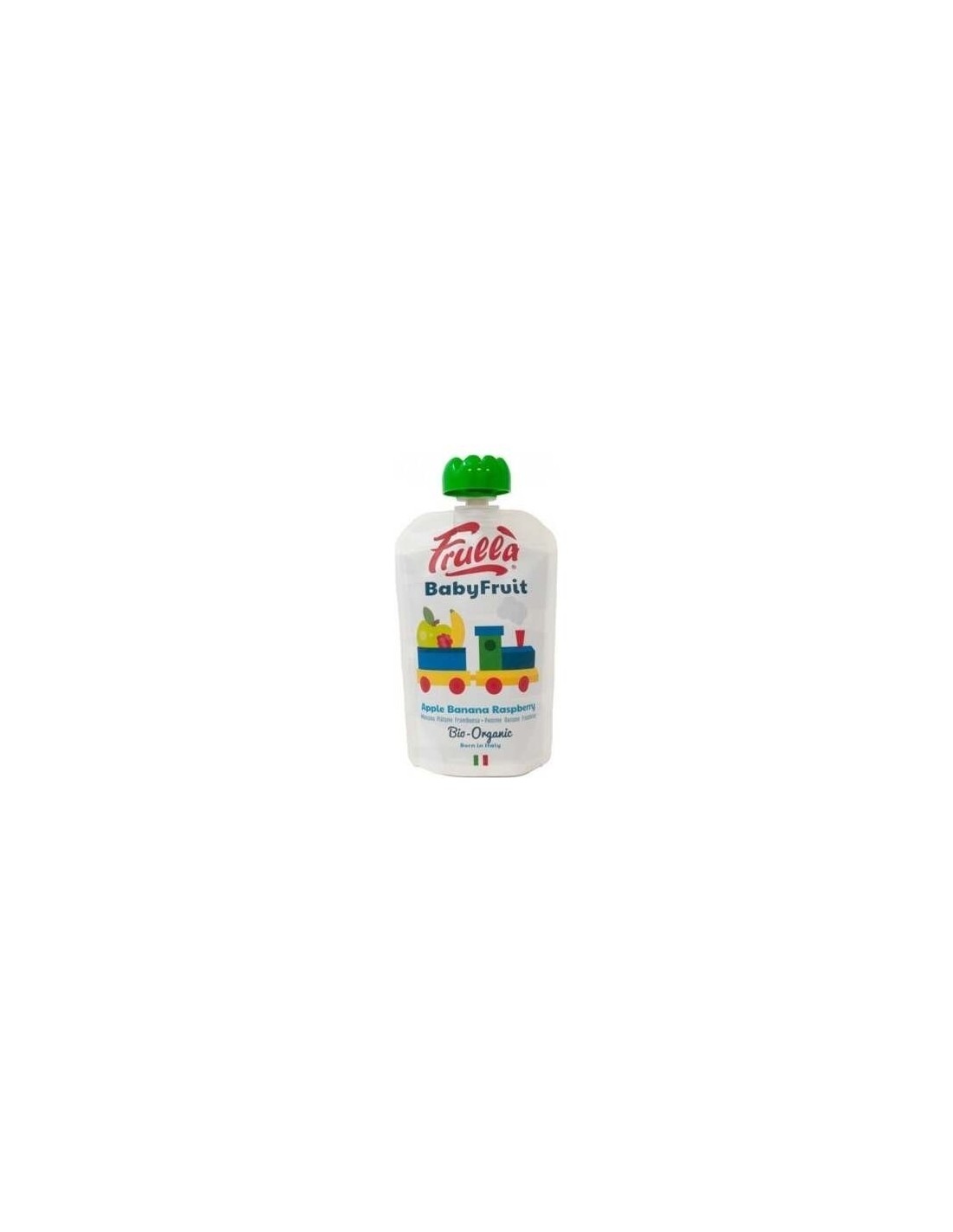 FRULLAPuré de manzana, plátano y frambuesa procedentes de cultivo ecológico sin conservantes, aditivos ni azúcar añadido. Presentado en un práctico envase con cierre para disfrutar en cualquier momento del día.