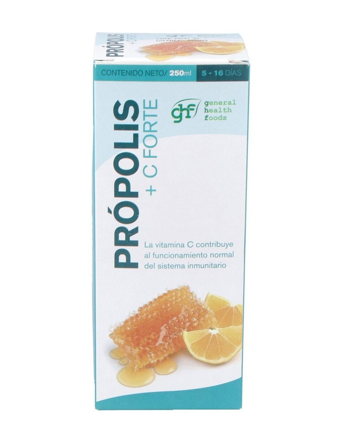GHFEl Propoleo + Vit. C Jarabe 250Ml. de Ghf es un suplemento líquido para personas que buscan apoyar su bienestar diario, combinando propóleo y vitamina C para contribuir a la protección natural del organismo.