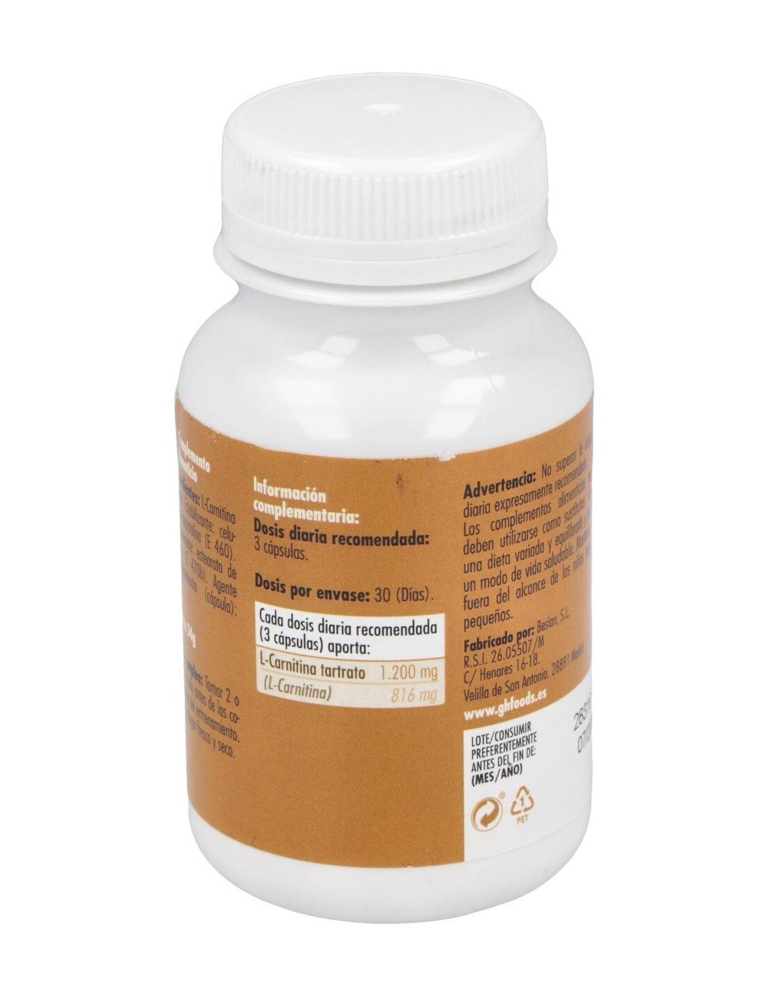 GHFComplemento alimenticio elaborado a base de carnitina 500 miligramos. La carnitina es un aminoácido que tiene como función transportar los ácidos grasos hacia el interior de las mitocondrias.
