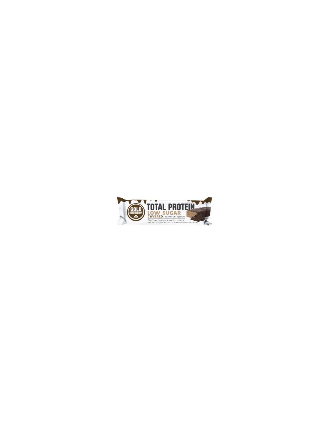 GOLD NUTRITIONEs una barrita hiperproteica, en la que destaca la inclusión de OPTIPEP® 4Bars (hidrolizado de proteína de suero de leche) que le otorga una mejor textura y sabor, teniendo una absorción más rápida y una mejor digestibilidad. Total Protein Low Sugar Covered GoldNutrition® también tiene un buen contenido de fibra que retrasará la absorción de nutrientes como el azúcar. Es saciante y su contenido en achicoria le otorga un efecto prebiótico.