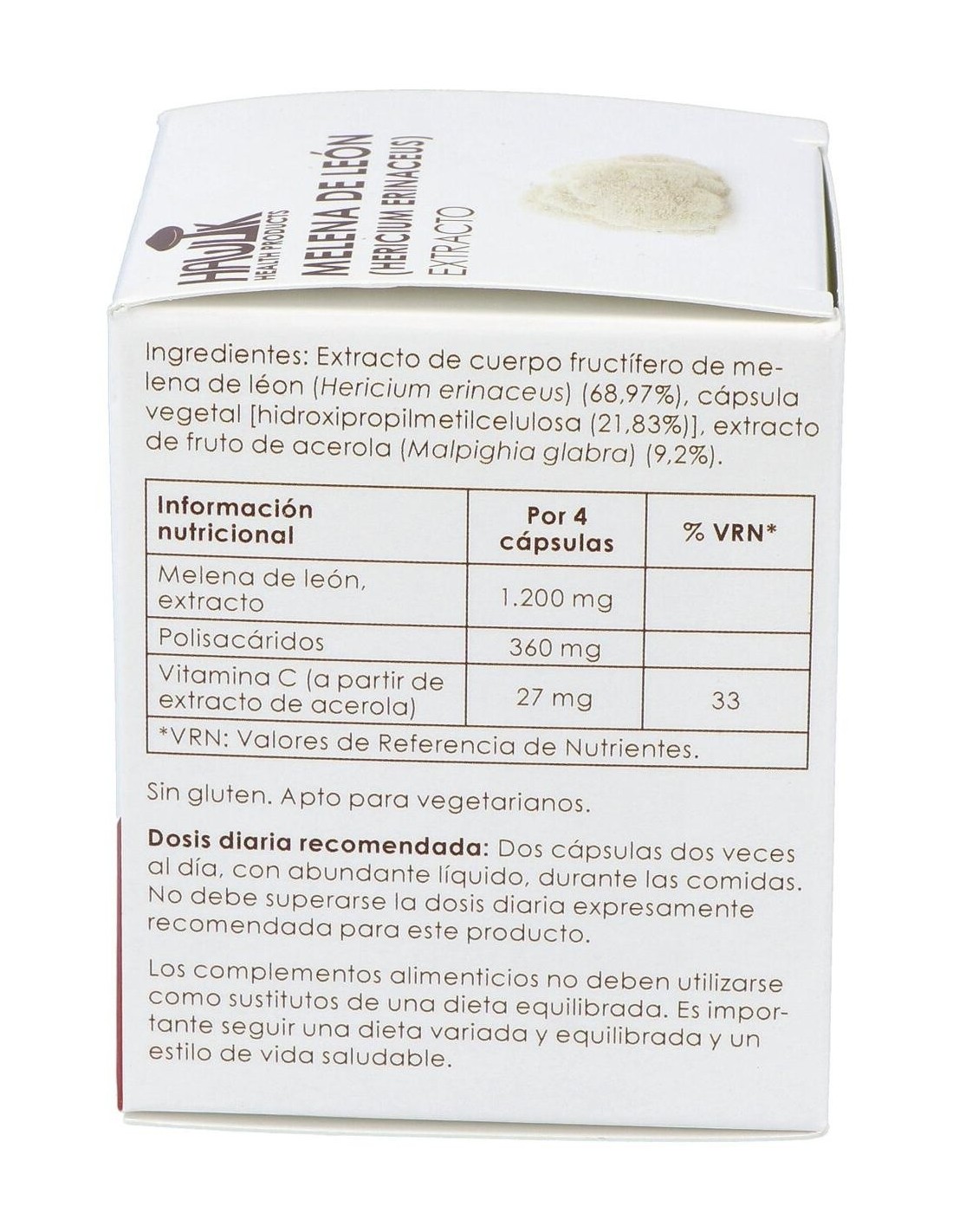 1.200 mg de extracto de melena de león (360 mg de polisacáridos).