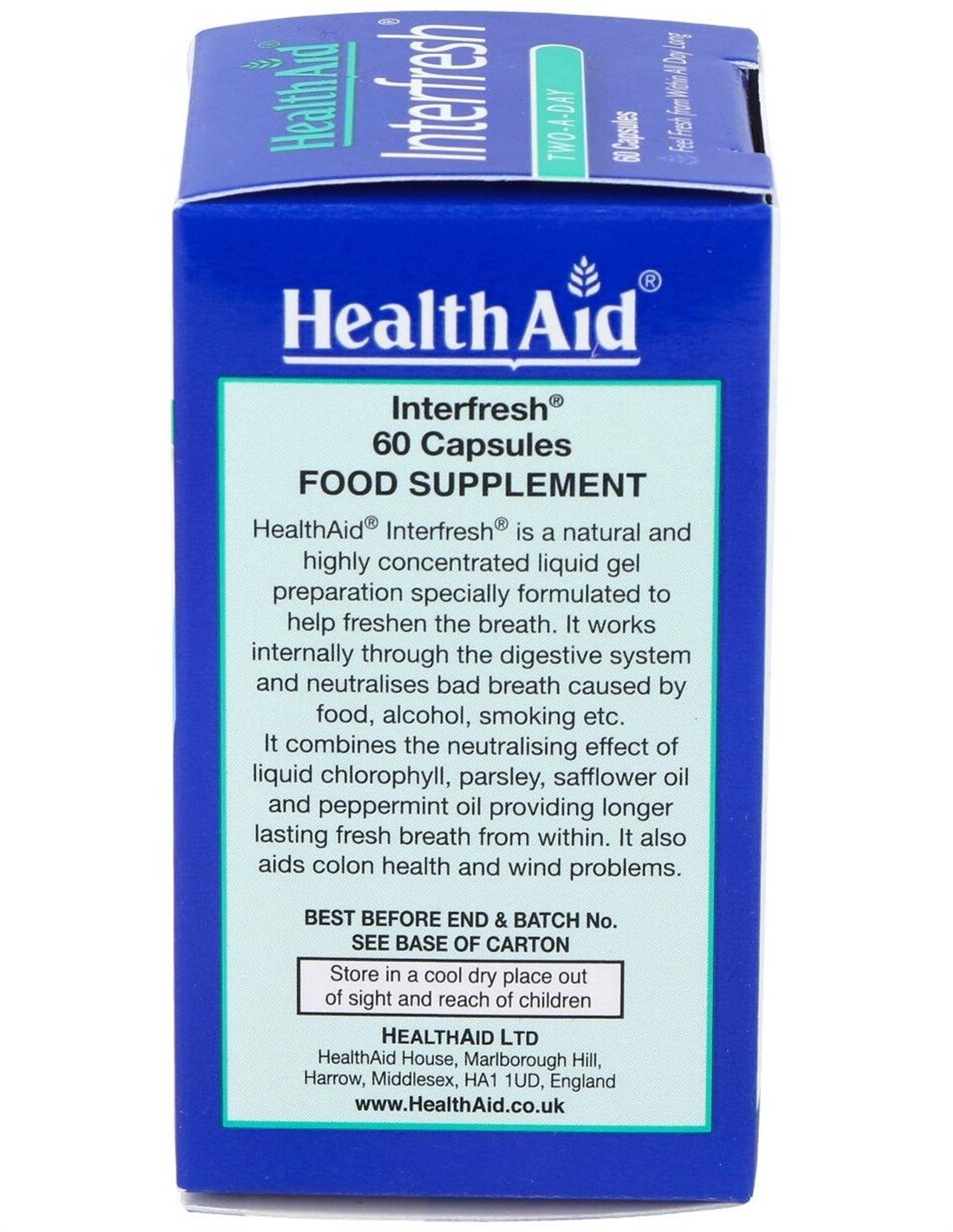 HEALTH AIDEste producto es una preparación de gel líquido natural y concentrado especialmente formulado para ayudar a refrescar el aliento. Las cápsulas Interfr