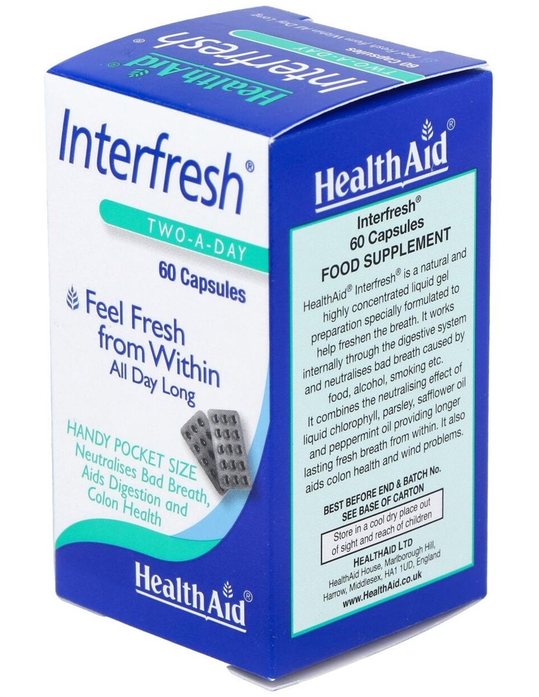 Interfresh 60Cap. Health Aid de Health Aid ofrece una opción para quienes buscan complementar su cuidado personal con un suplemento formulado para integrarse en su rutina diaria.