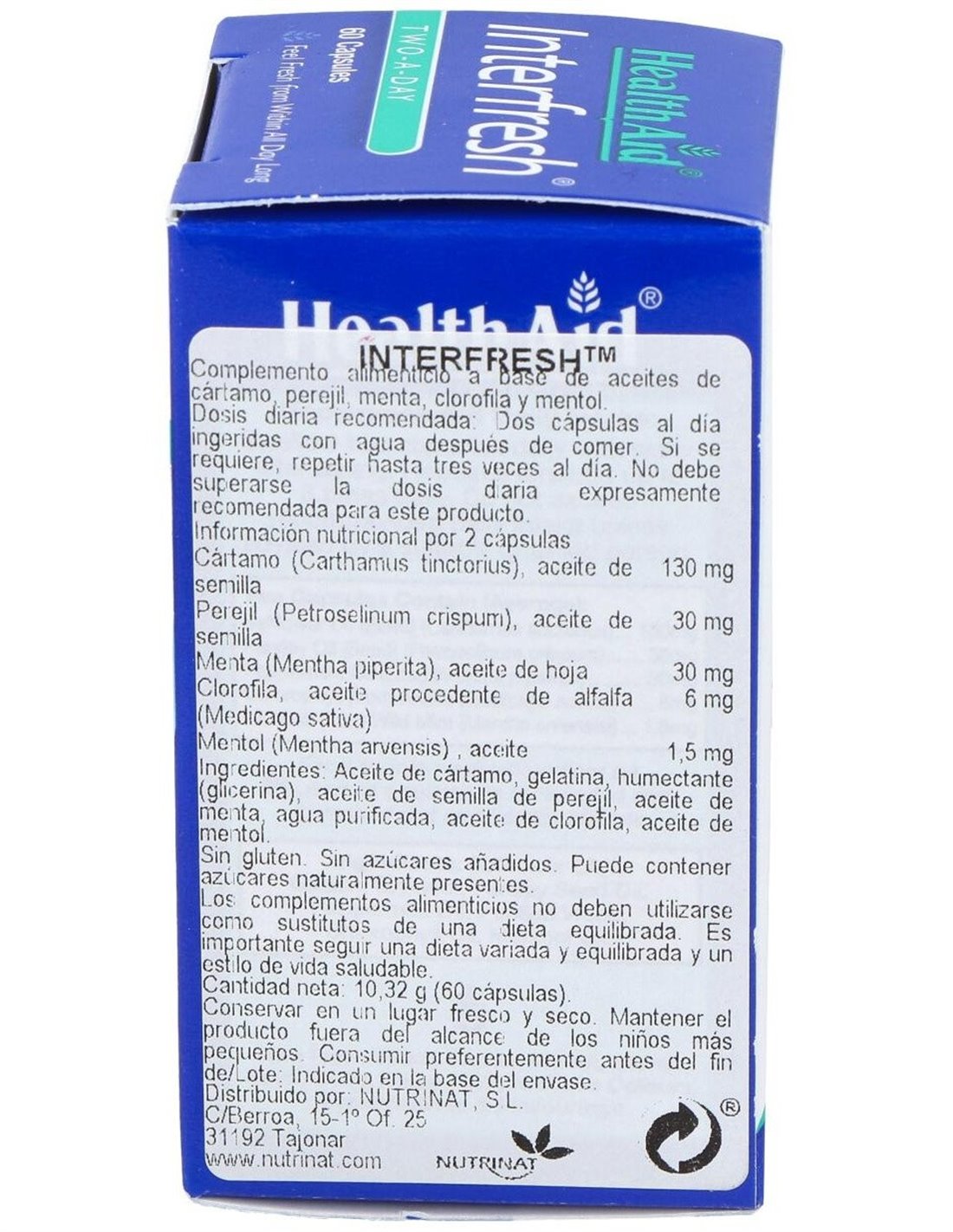 Interfresh 60Cap. Health Aid de Health Aid es un suplemento diseñado para personas que buscan apoyar su bienestar diario mediante ingredientes seleccionados cuidadosamente. Es adecuado para quienes desean complementar su rutina con un producto formulado para integrarse fácilmente en su estilo de vida.