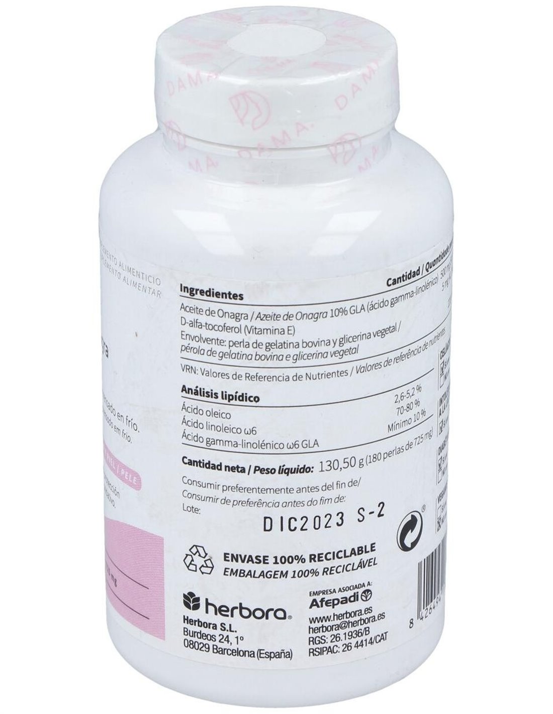 HERBORAEl aceite de onagra proporciona ácidos grasos esenciales o poliinsaturados (AGP), que son muy necesarios para nuestro organiso ya que no lo podemos si