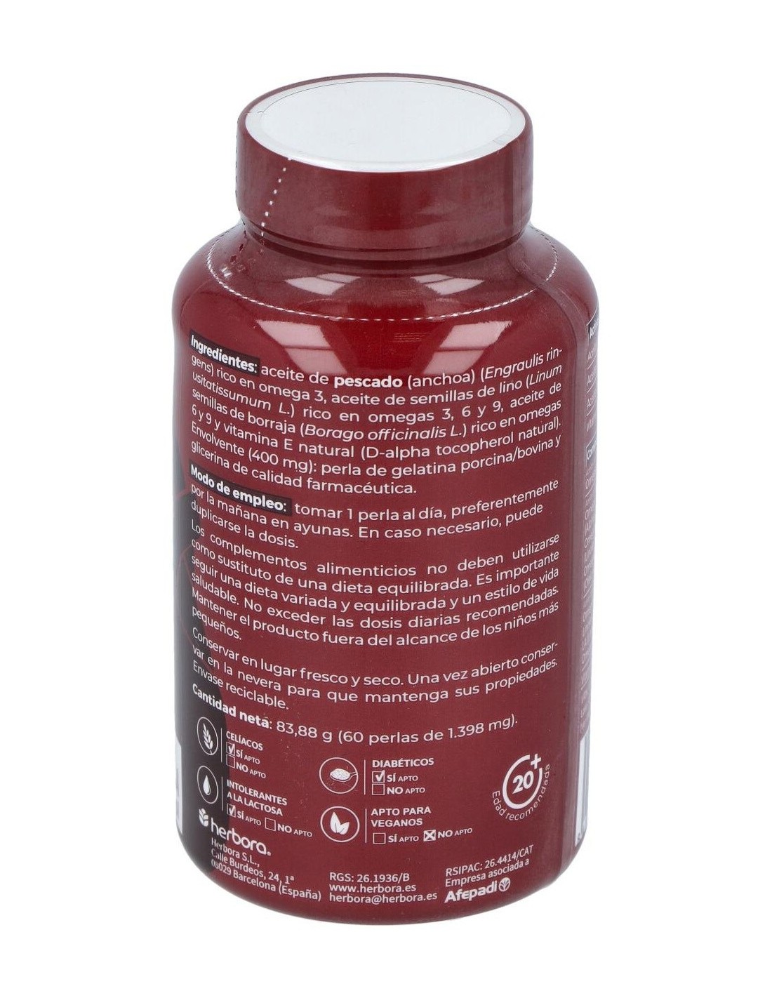 Otros ingredientes:Envolvente: gelatina (porcina-bovina) y glicerina de calidad farmace´utica. Modo de empleo:Tomar 1 perla al día, preferentemente en ayudas. Presentación:Bote de 60 perlas.