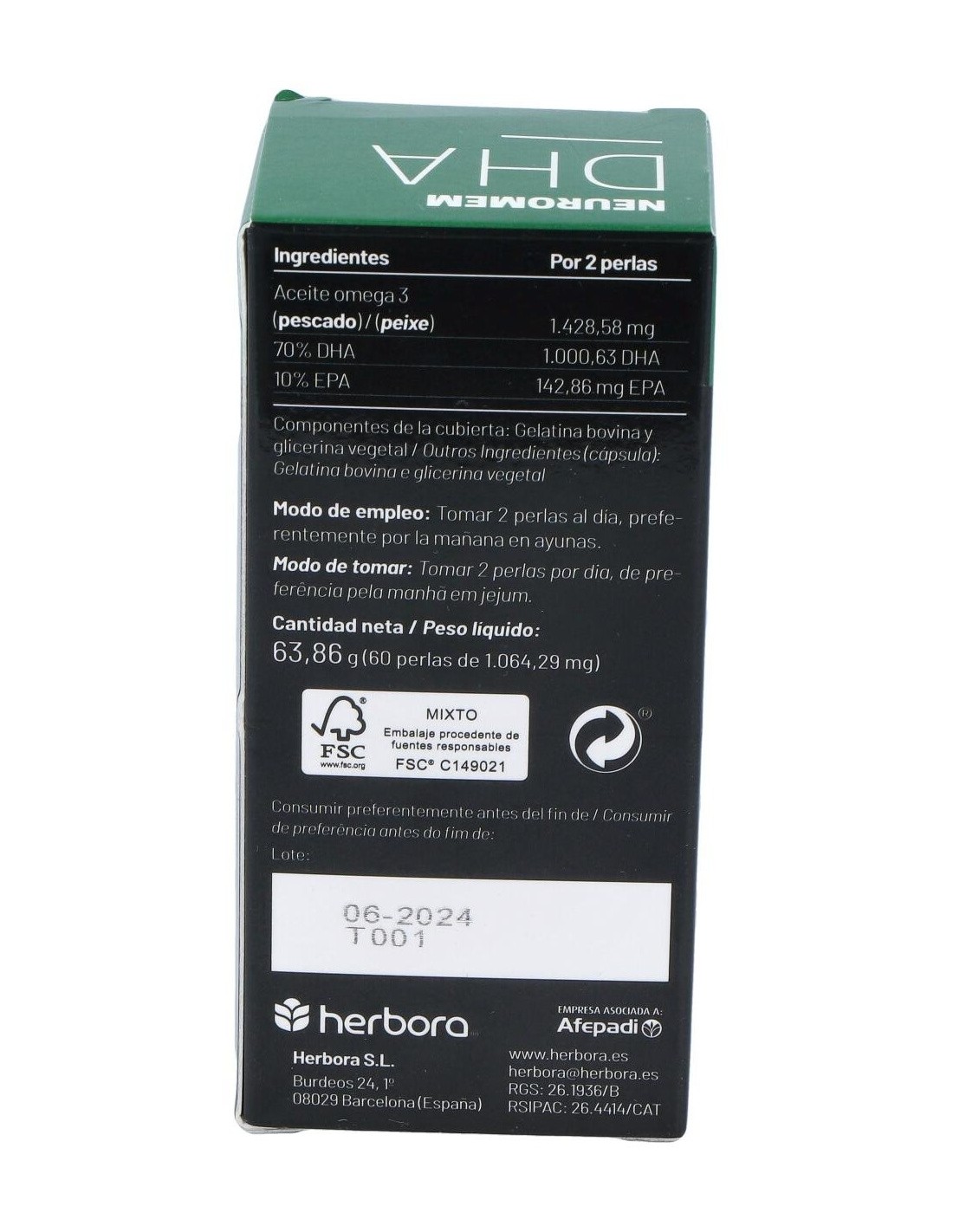 HERBORANeuromem Dha de Herbora es un suplemento nutricional para personas que buscan apoyar la función cerebral, formulado con DHA para contribuir al mantenimiento de la memoria y la concentración.