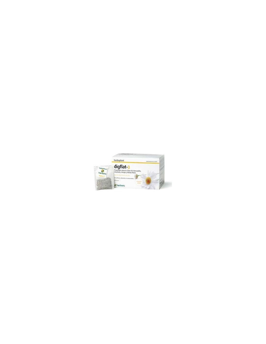 HERBORAEl Digflat-3 de Herbora es un suplemento digestivo para personas con molestias estomacales. Facilita la digestión gracias a su fórmula natural y equilibrada.