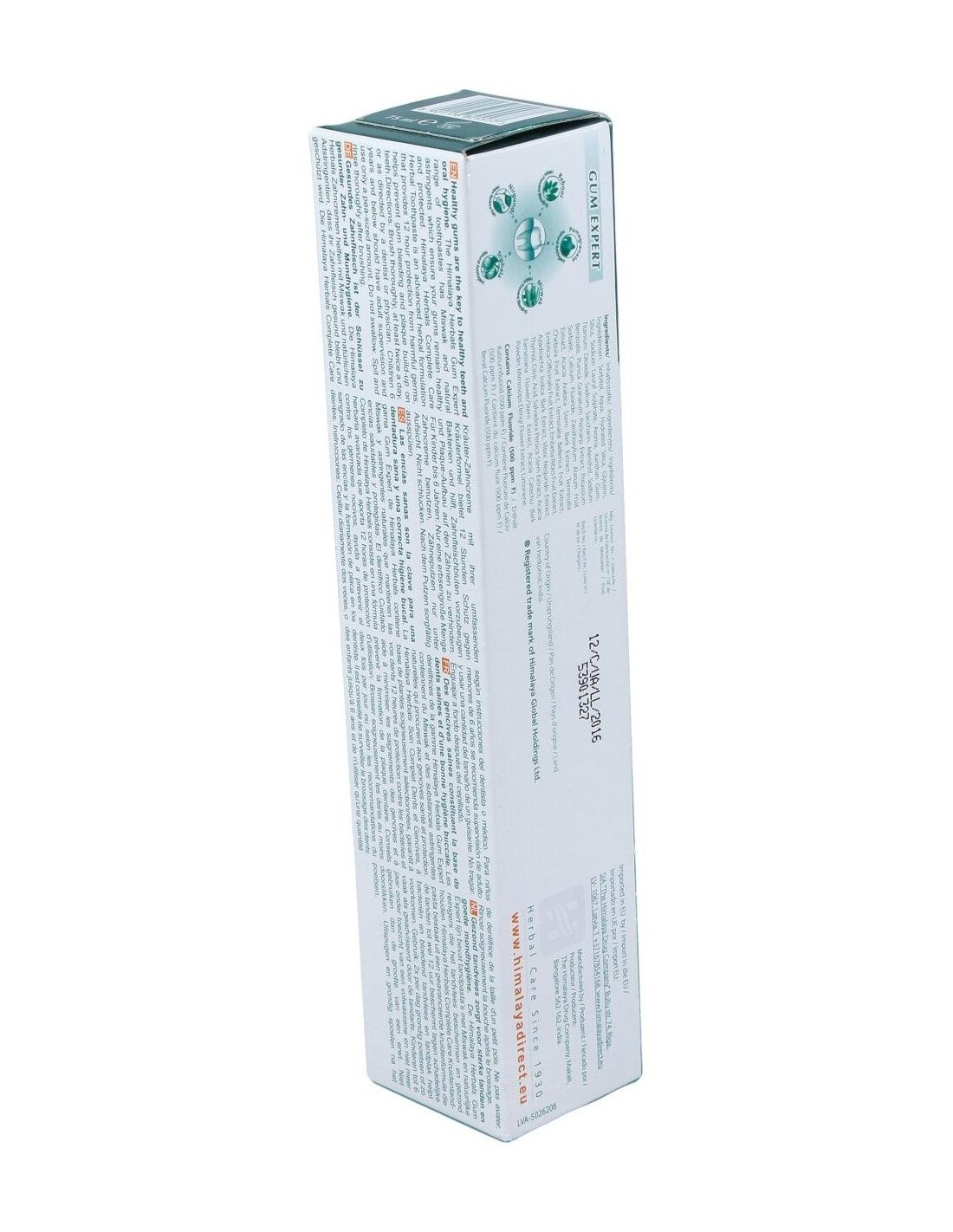 La gama de dentífricos Gum Expert de Himalaya Herbals contiene Miswak (Salvadora persica) y una serie de astringentes naturales que se ocupan de que sus encías permanezcan sanas y protegidas.La pasta dentífrica de cuidado completo a base de hierbas cuenta con una fórmula avanzada que ofrece protección durante 12 horas frente a gérmenes dañinos. Además, ayuda a evitar el sangrado de las encías y la acumulación de placa en los dientes.Propiedades: