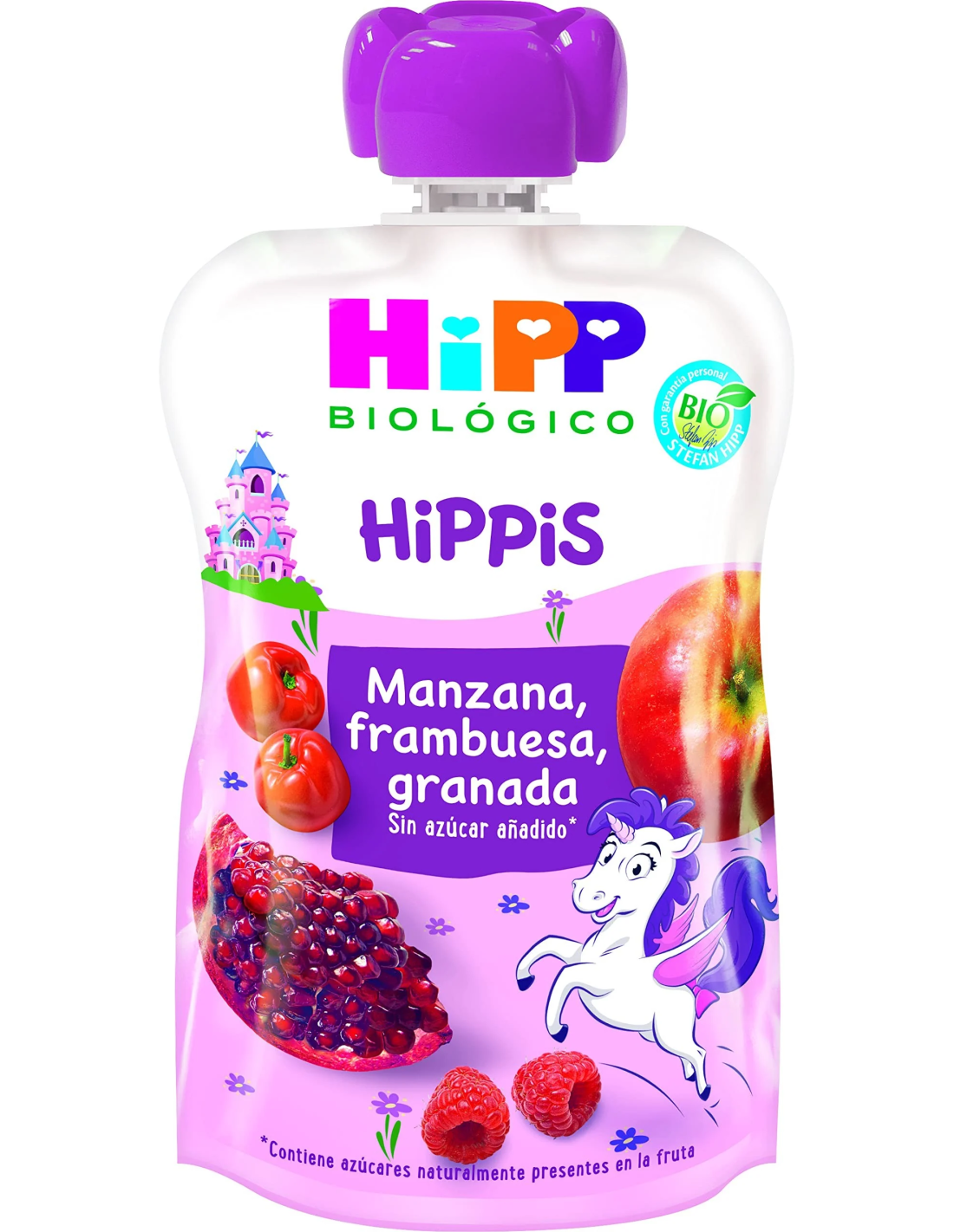 HIPPCaracterísticas y Beneficios del Pack 6 Uds. Pouches Unicornio (Manzana,Frambuesa,Granada) Bio 100 g de Hipp
