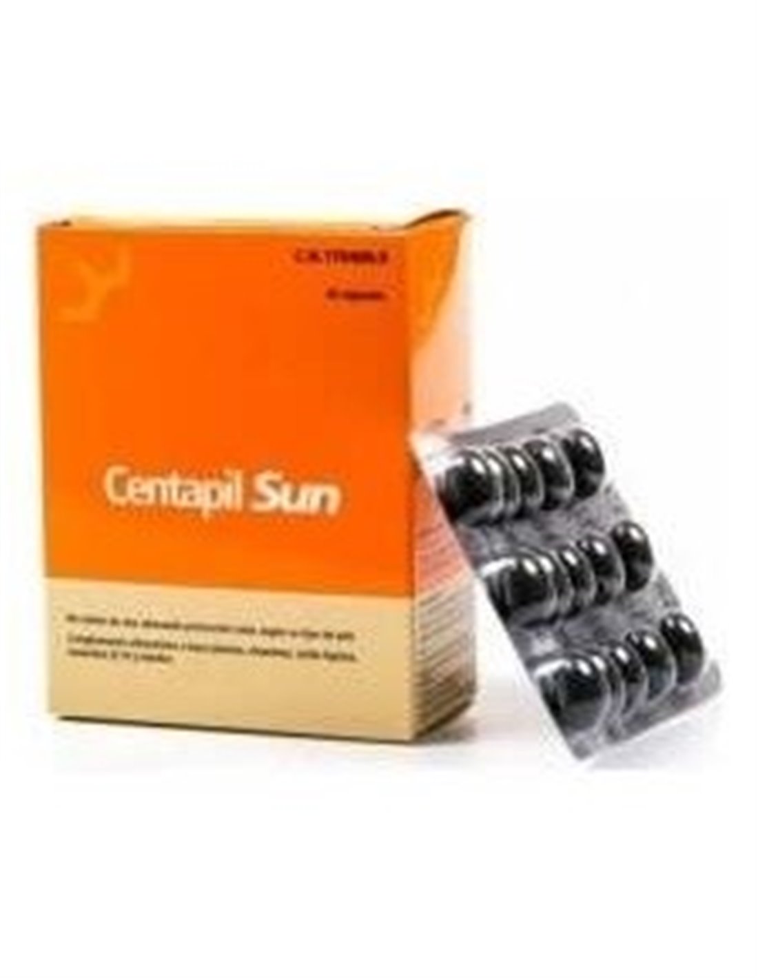 Centapil Sun es un complemento alimenticio indicado para proteger la piel y el cabello frente a los efectos nocivos de las radiaciones solares durante la exposición al sol.