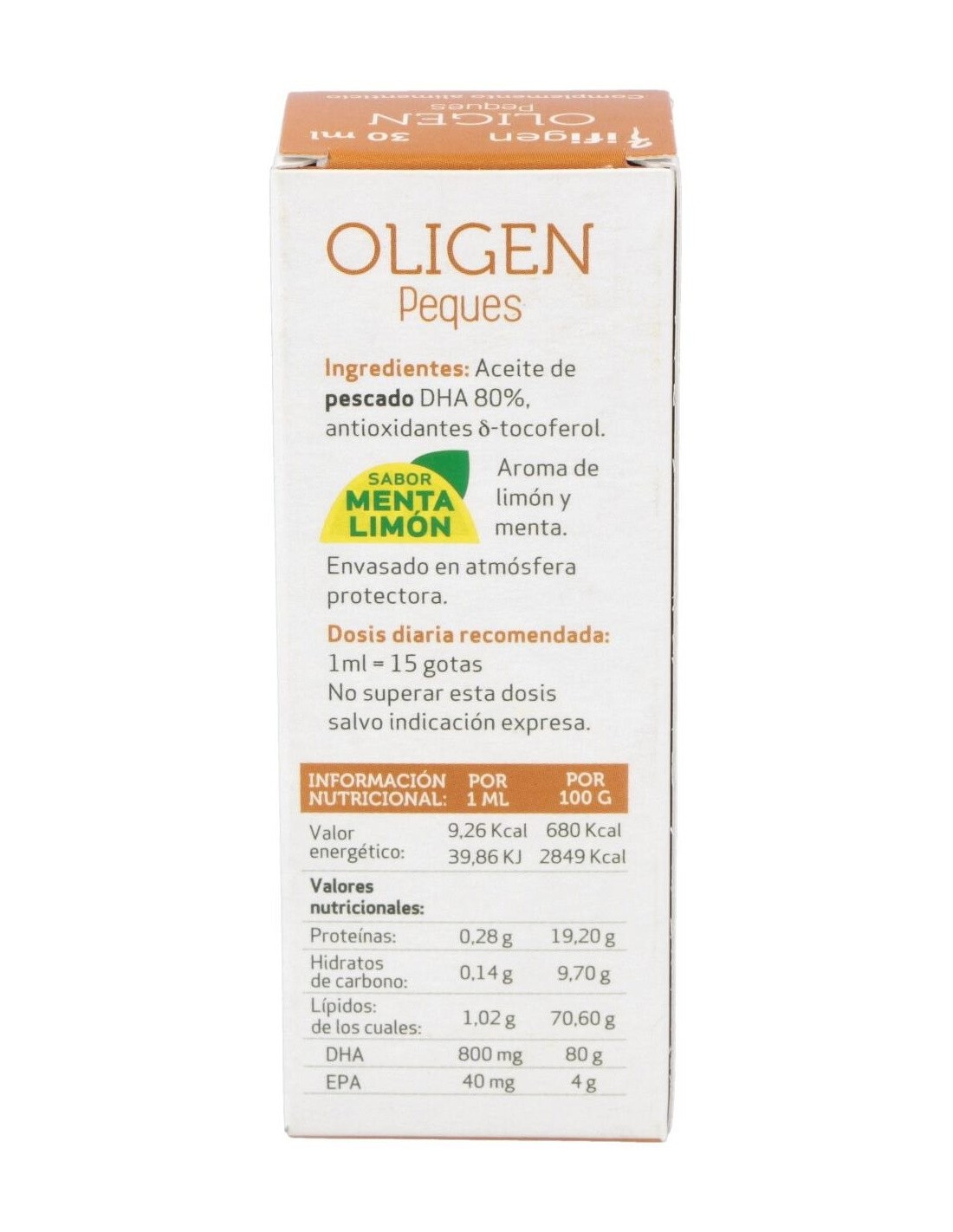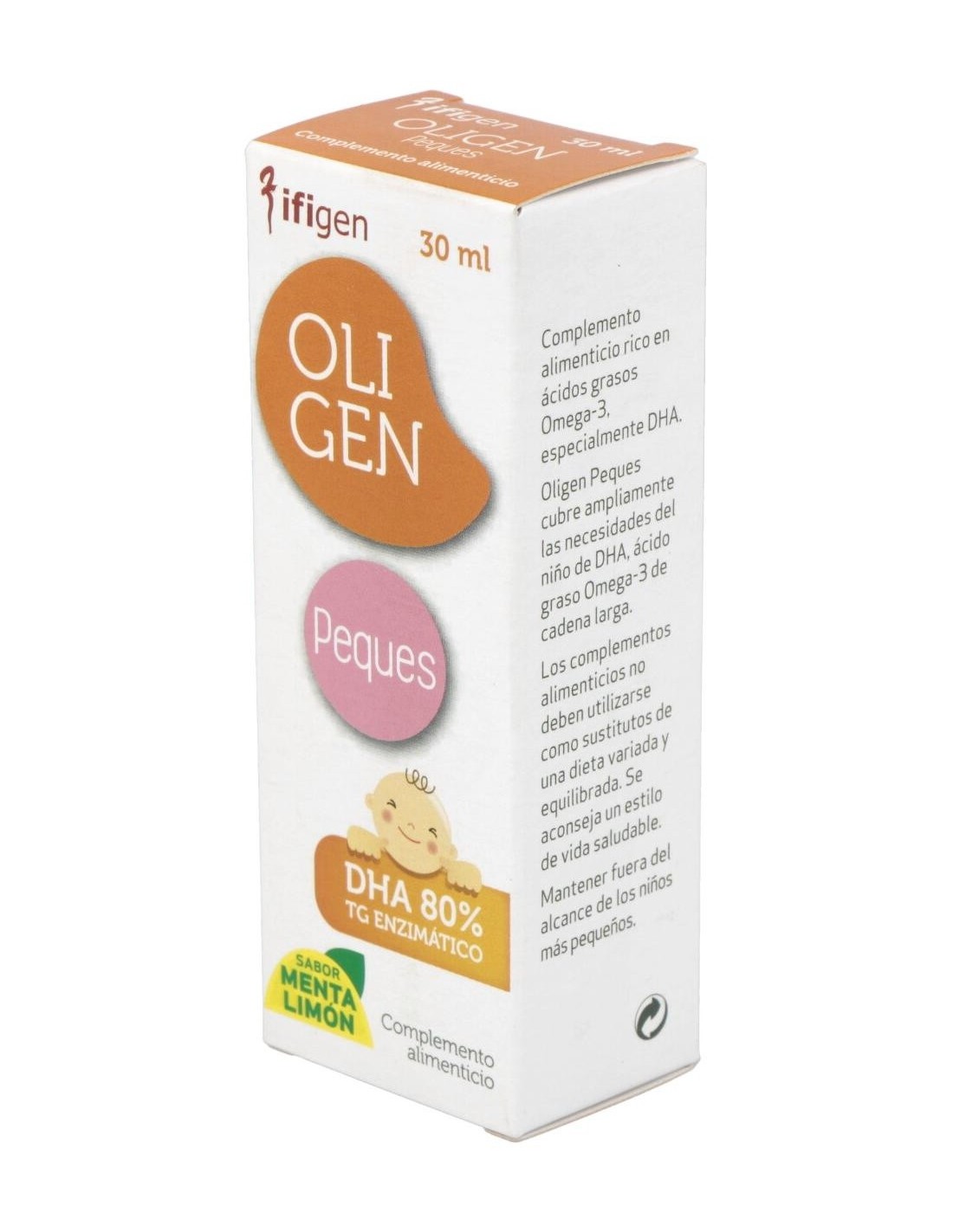 Oligen Peques Dha 80% Tg Enzimatico Menta-Lima 30M de Ifigen es un suplemento diseñado para niños, formulado para apoyar su desarrollo diario con ingredientes seleccionados que facilitan su absorción. Su presentación en sabor menta-lima ofrece una experiencia agradable para los pequeños.