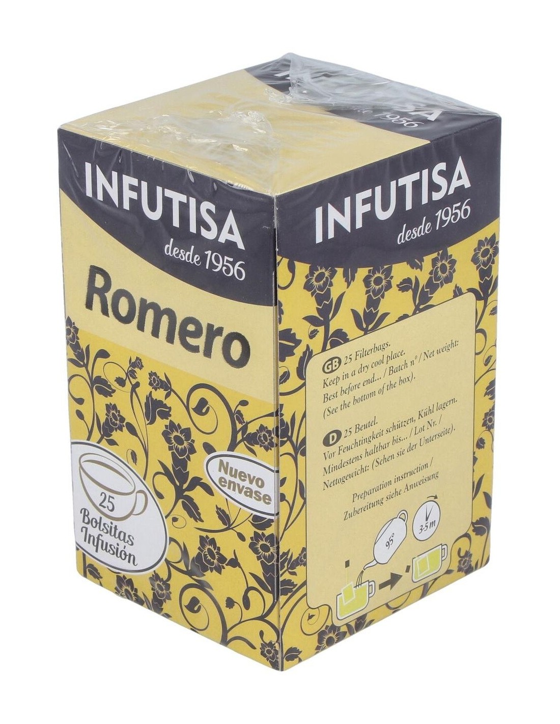 Romero Infusion 25Bolsitas de Infutisa es una presentación práctica de infusión elaborada con hojas de romero, pensada para quienes buscan una opción natural para disfrutar en su rutina diaria. Este producto es adecuado para personas interesadas en infusiones de hierbas que aporten frescura y sabor característico.