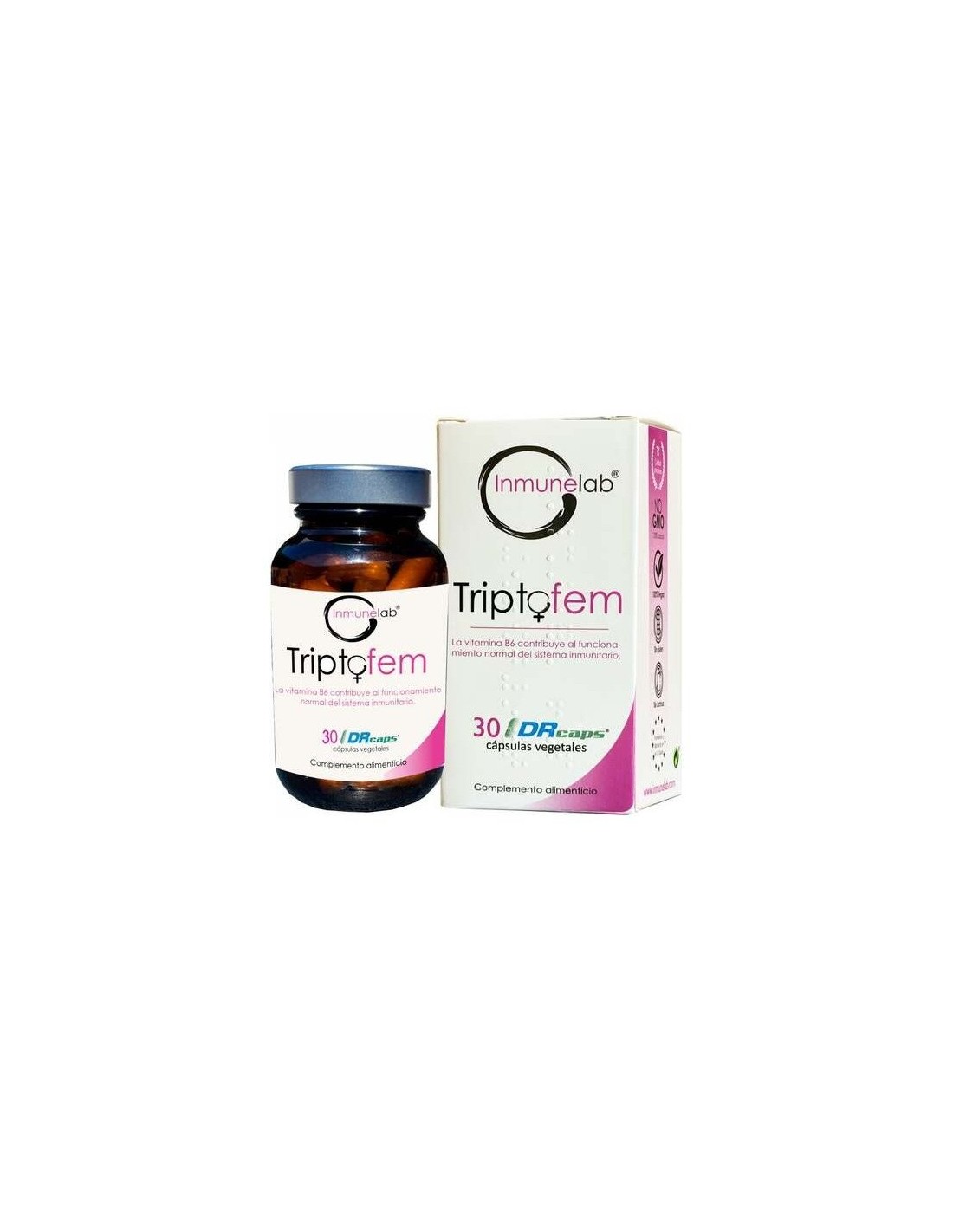 INMUNELABEl Triptofem 30Cap. de Inmunelab es un suplemento dirigido a mujeres que busca apoyar el bienestar emocional y el equilibrio hormonal mediante su fórmula con triptófano.
