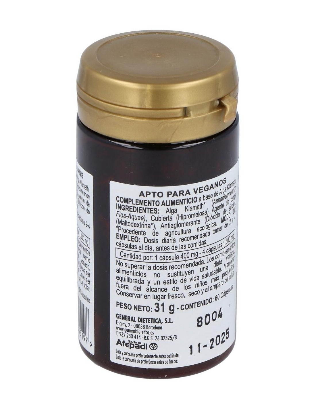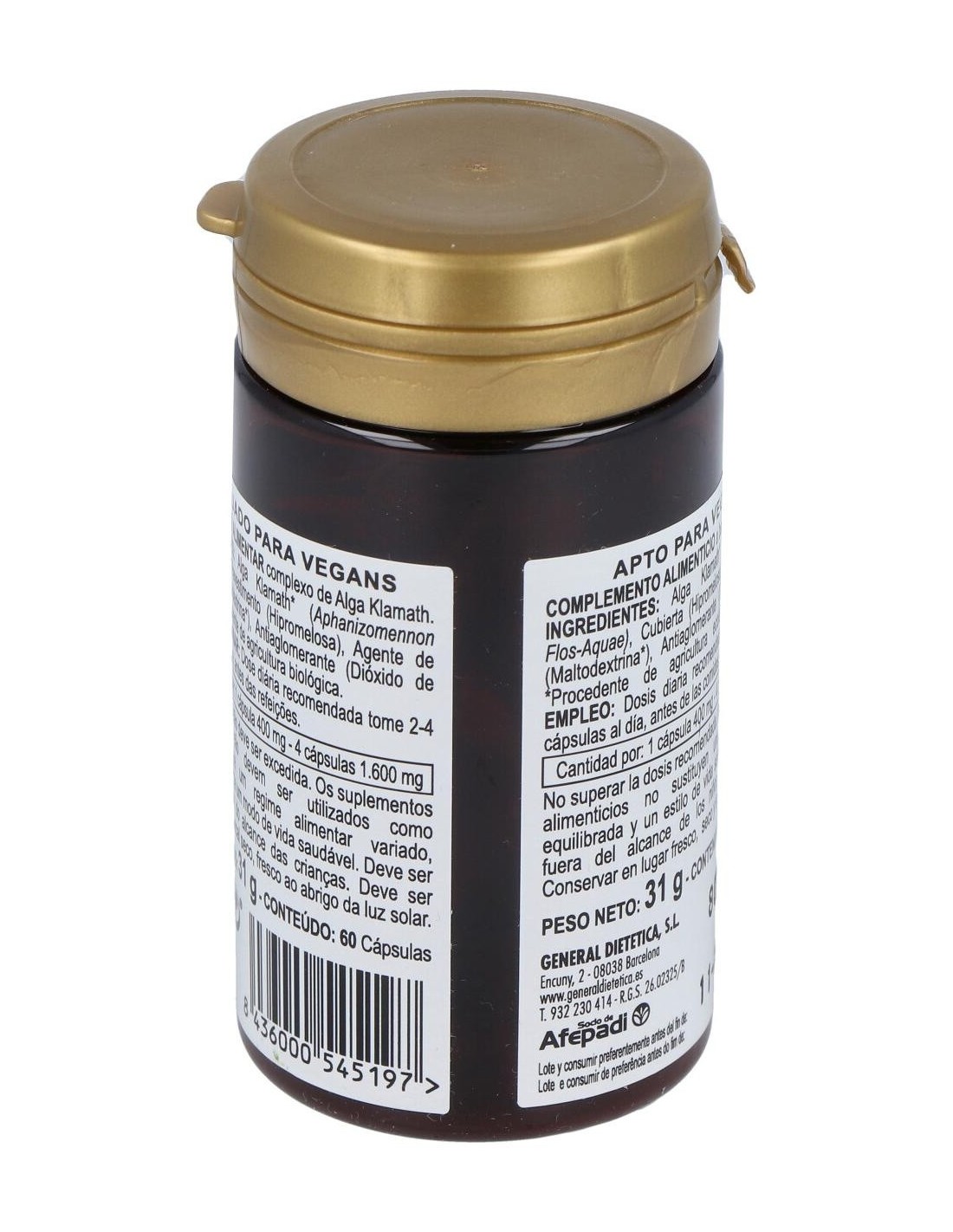 - Contiene alga Klamath cultivada de forma ecológica, que aporta una variedad de vitaminas y minerales esenciales para el organismo.
