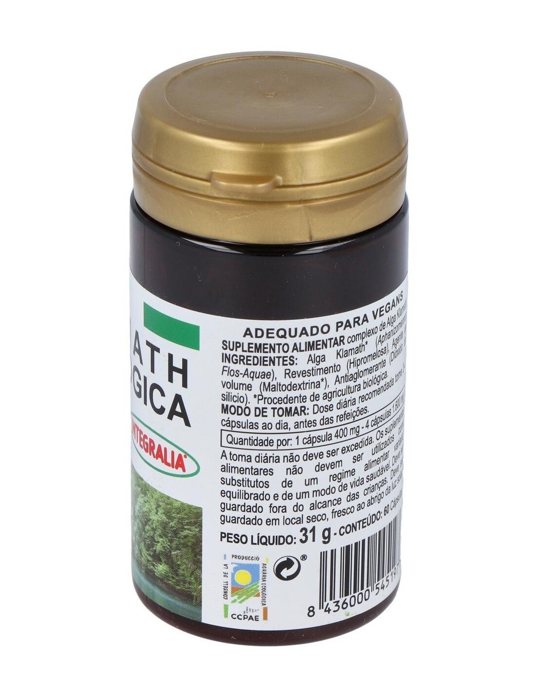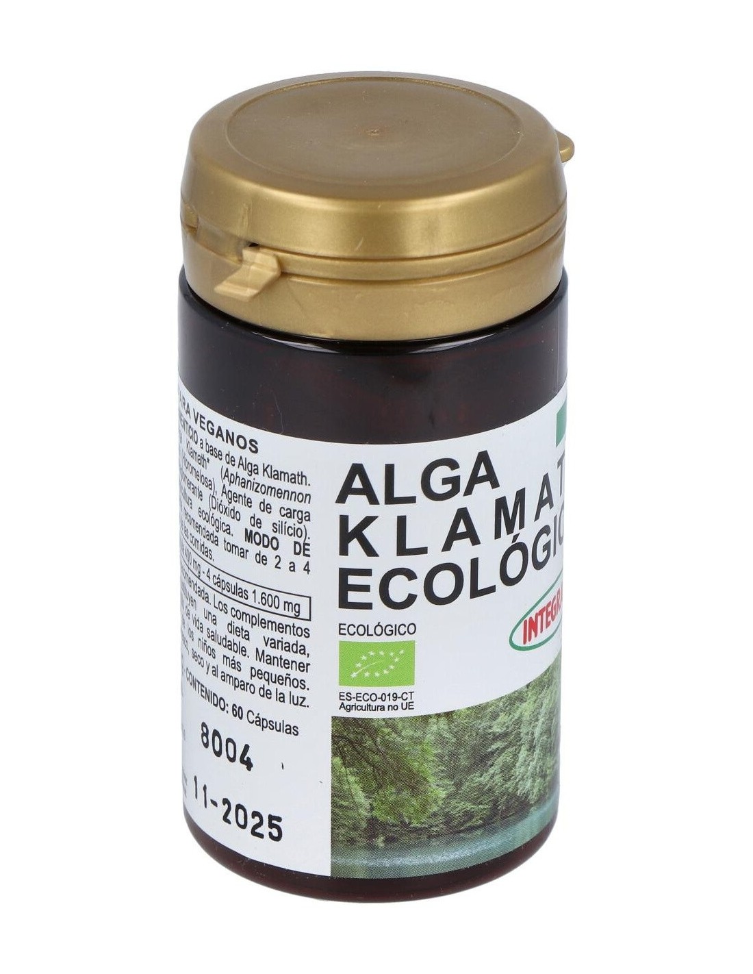 Alga Klamath Eco 60Cap. de Integralia ofrece una opción natural para complementar la dieta con nutrientes provenientes de un alga cultivada de manera responsable.