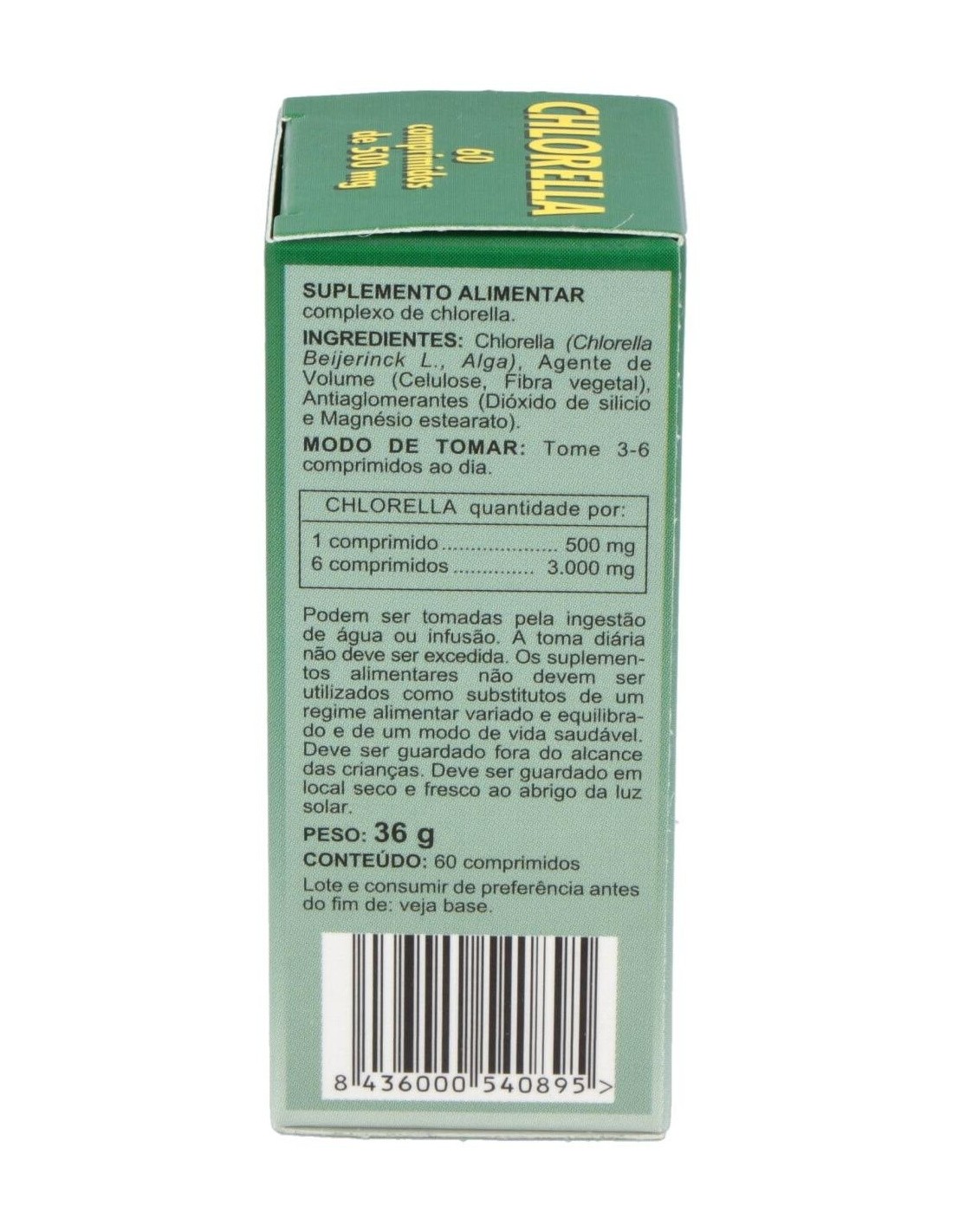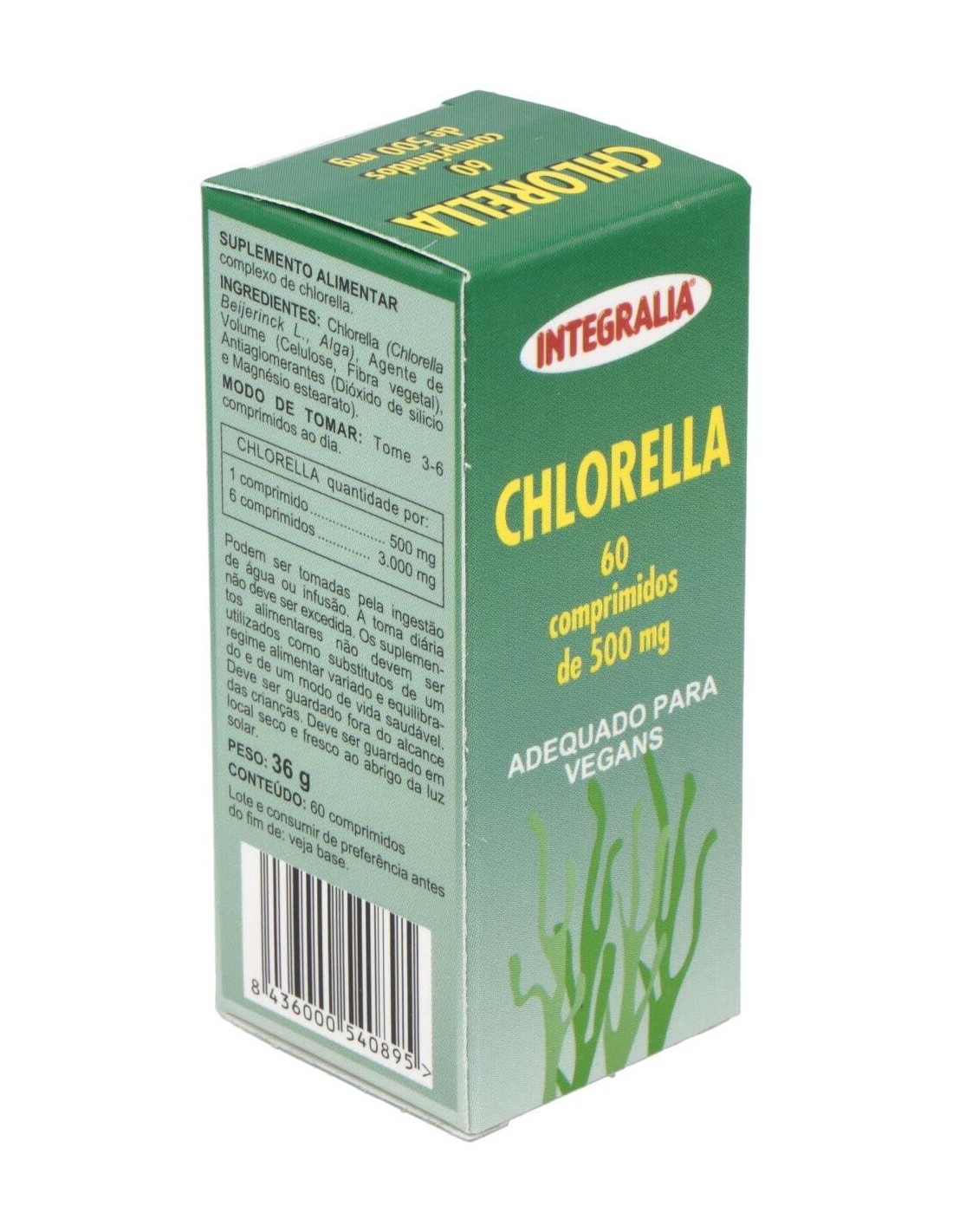 - Cada comprimido contiene 500 mg de chlorella, una microalga conocida por su perfil nutricional.