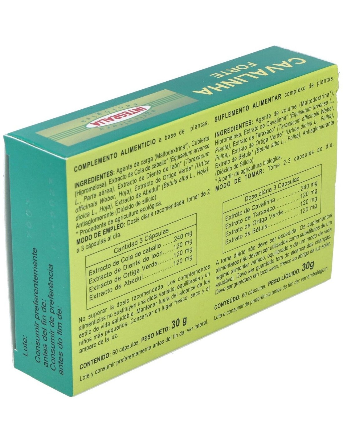 INTEGRALIALa Cola De Caballo Forte Eco 60Cap. de Integralia es un suplemento natural para personas que buscan apoyar la salud renal y la eliminación de líquidos, formulado con extracto concentrado de cola de caballo para una dosificación práctica y efectiva.