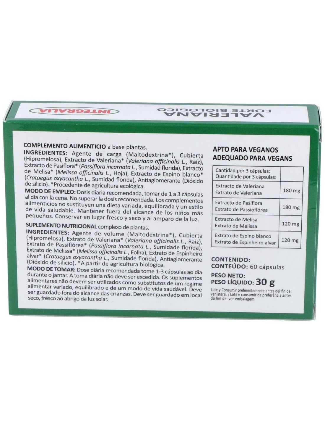 Valeriana Forte Eco 60Cap. de Integralia es un complemento alimenticio diseñado para personas que buscan apoyar su bienestar natural y mantener un estado de equilibrio en su rutina diaria. Es adecuado para quienes prefieren opciones basadas en ingredientes de origen vegetal.