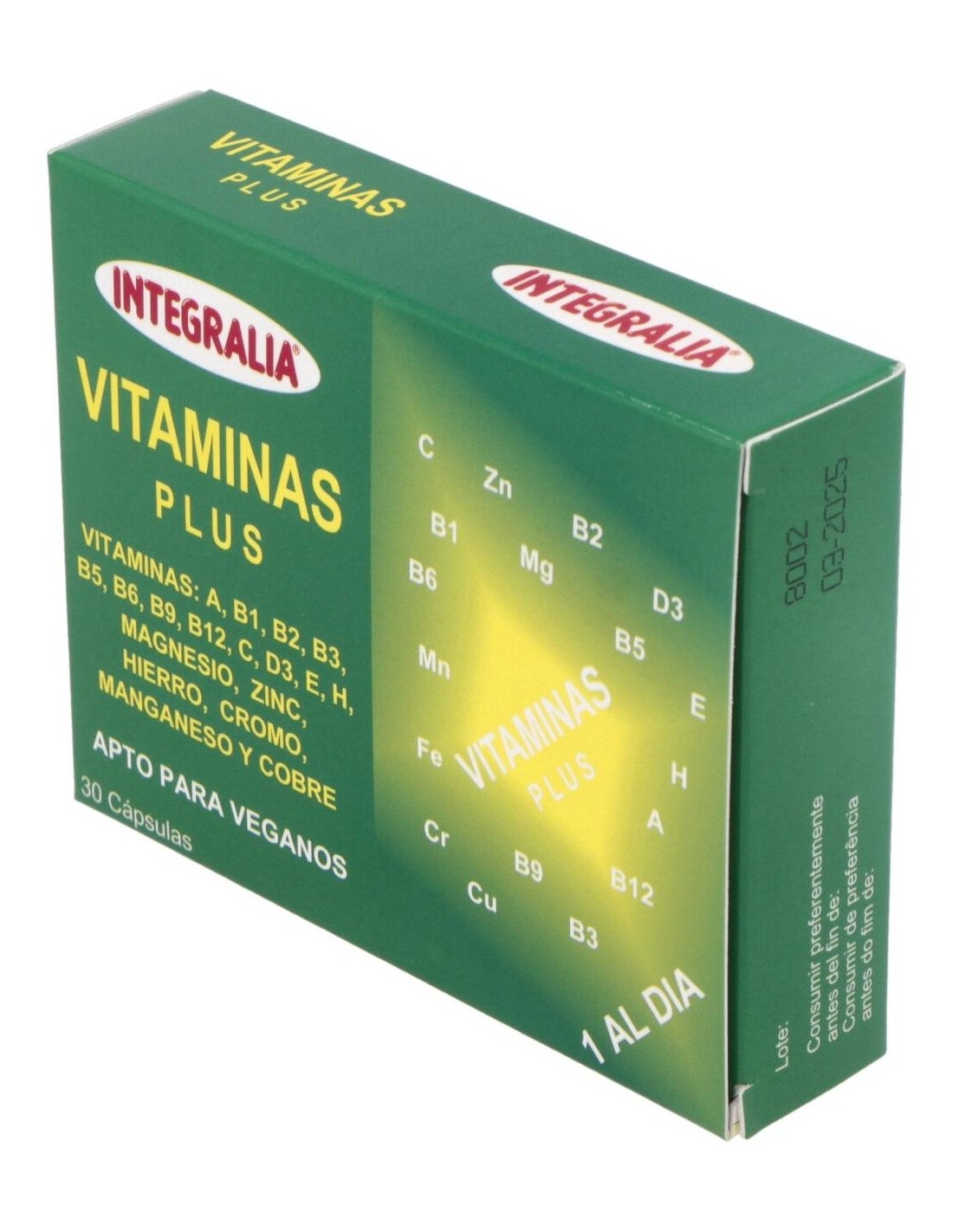 Vitaminas Plus 30Cap. de Integralia es un suplemento diseñado para personas que buscan complementar su dieta diaria con una fórmula equilibrada de vitaminas y minerales esenciales. Es adecuado para quienes desean mantener un aporte nutricional constante en su rutina habitual.