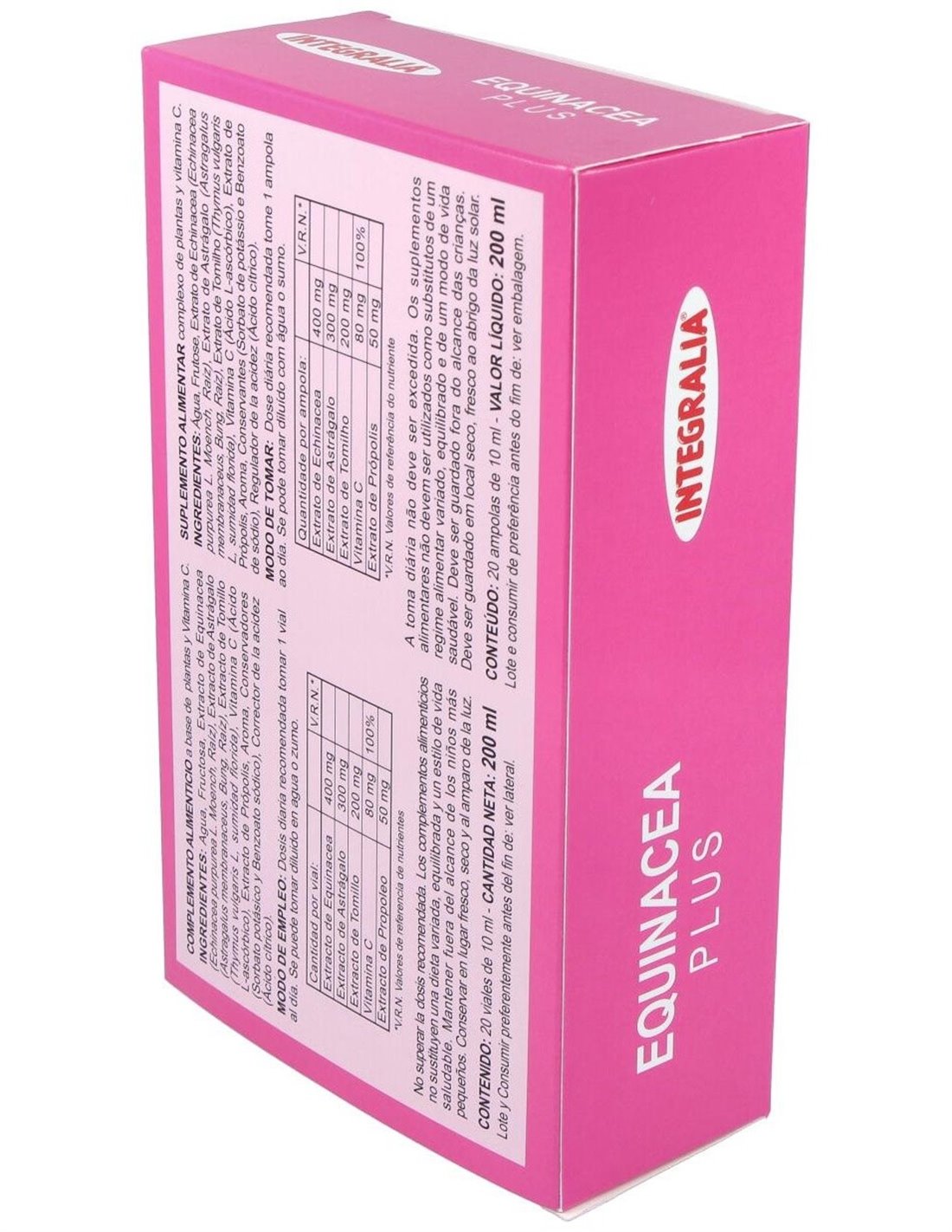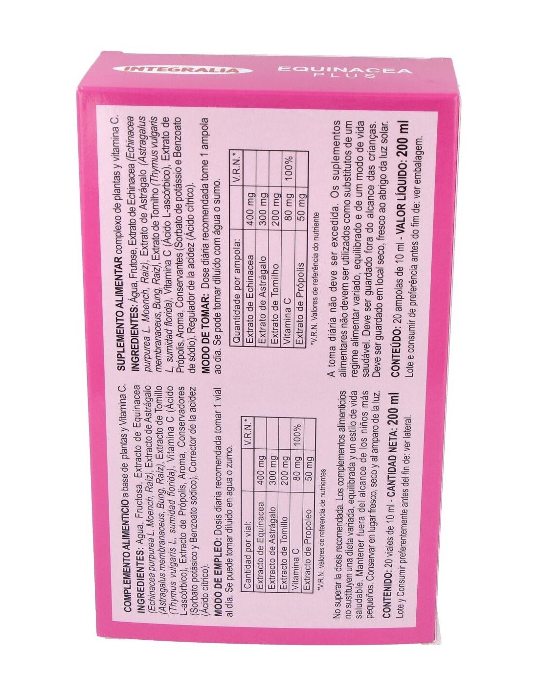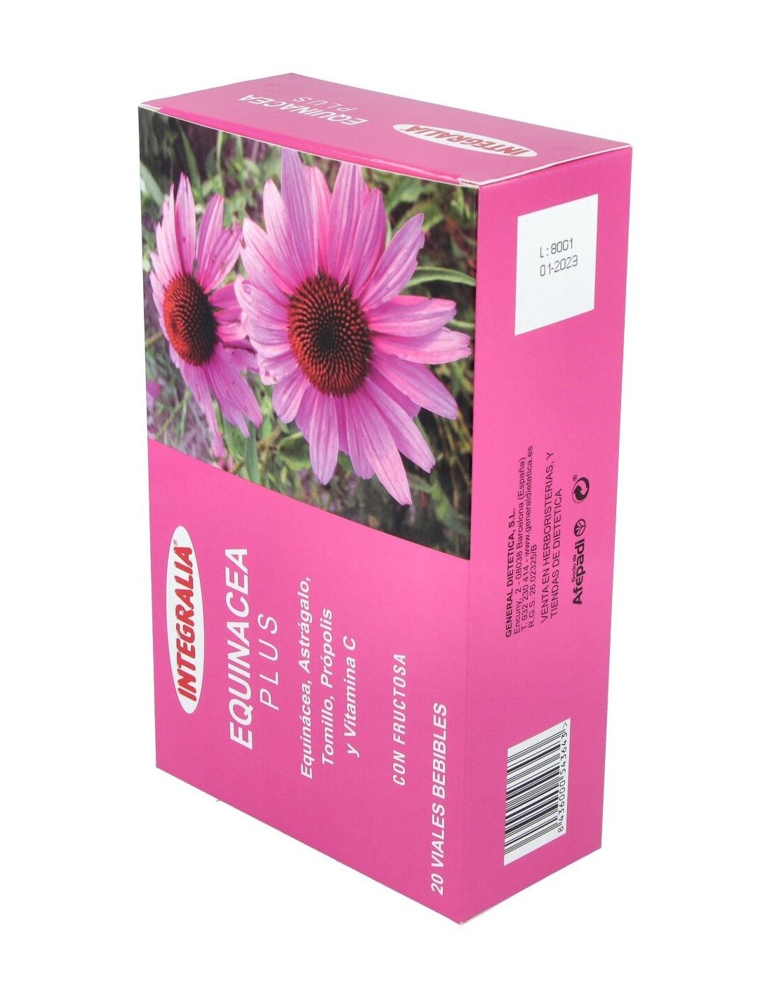 Echinacea Plus 20Viales de Integralia es un complemento formulado para personas que buscan apoyar su bienestar diario mediante ingredientes naturales. Está diseñado para quienes prefieren una presentación en viales que facilita su dosificación y consumo.