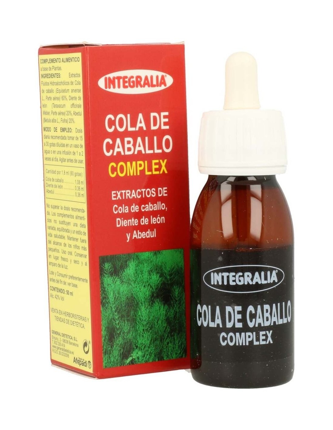 INTEGRALIAEl Cola De Caballo Complex Extracto 50Ml. de Integralia es un complemento natural para personas que buscan apoyar el bienestar urinario y la función renal, formulado con extracto concentrado de cola de caballo.