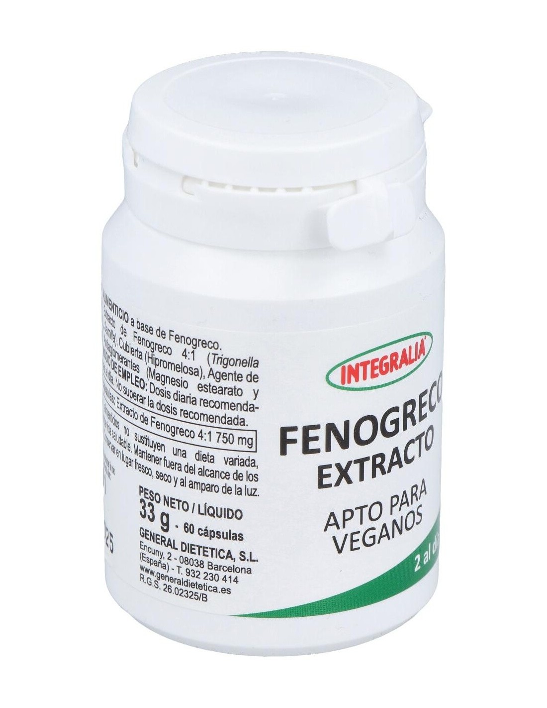 INTEGRALIAEl Fenogreco Extracto 60Cap. de Integralia es un suplemento natural dirigido a personas que buscan apoyar su bienestar digestivo y metabólico, formulado con extracto concentrado para facilitar su consumo diario.