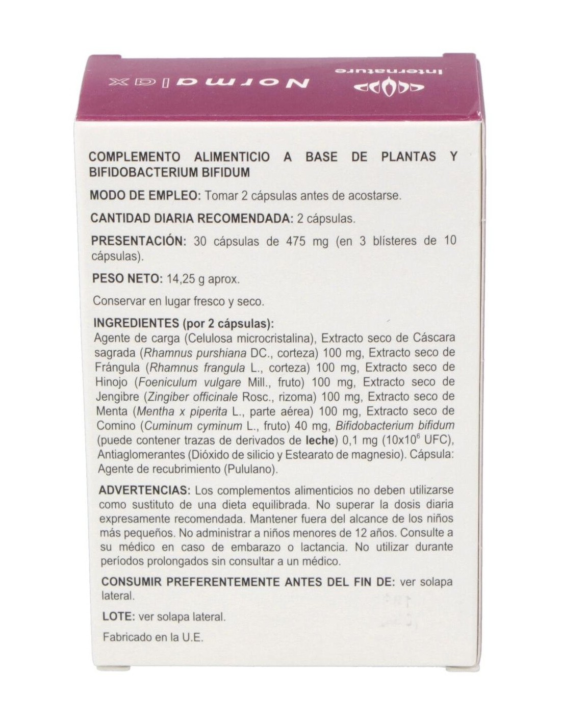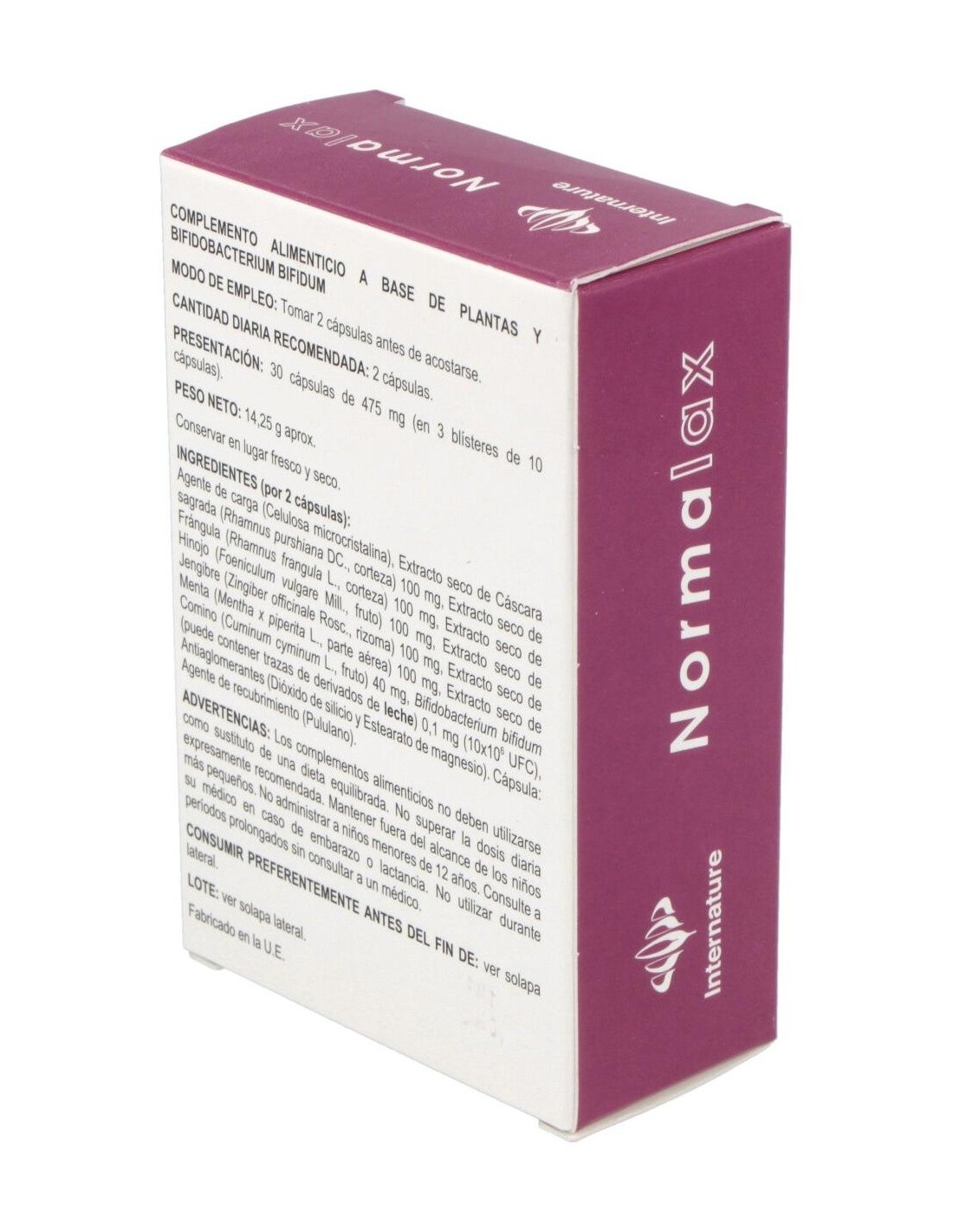 INTERNATURENormalax es un preparado de especies vegetales tradicionales, que favorece la evacuación y reduce la hinchazón abdominal. Recomendado en todos los cas