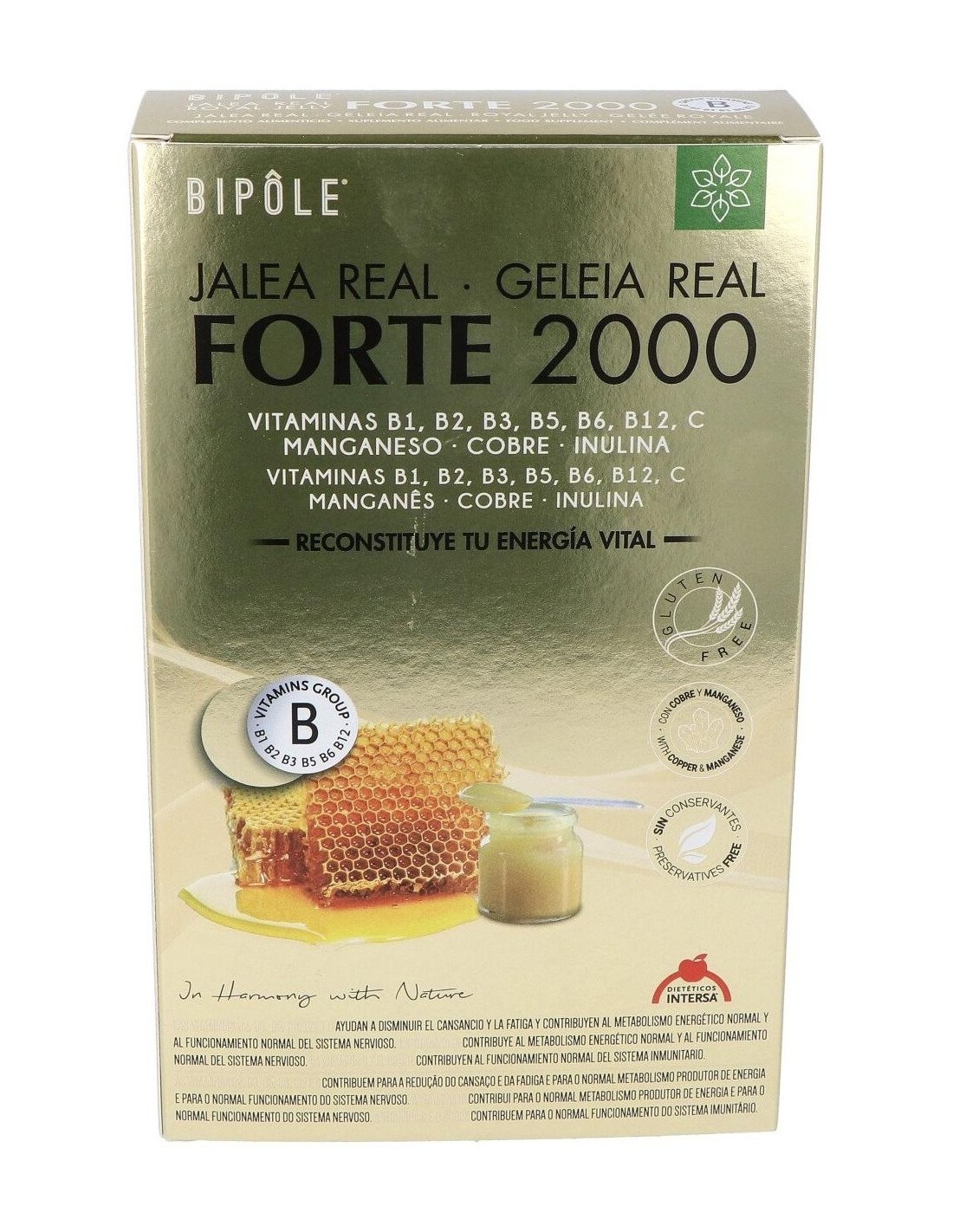 Bipole Jalea Real Forte 2000 es un complemento alimenticio que ayuda a combatir la fatiga y el cansancio además de contribuir a la función psicológica normal. También, fortalece el sistema inmunitario y lo ayuda a defenderse de posibles infecciones.