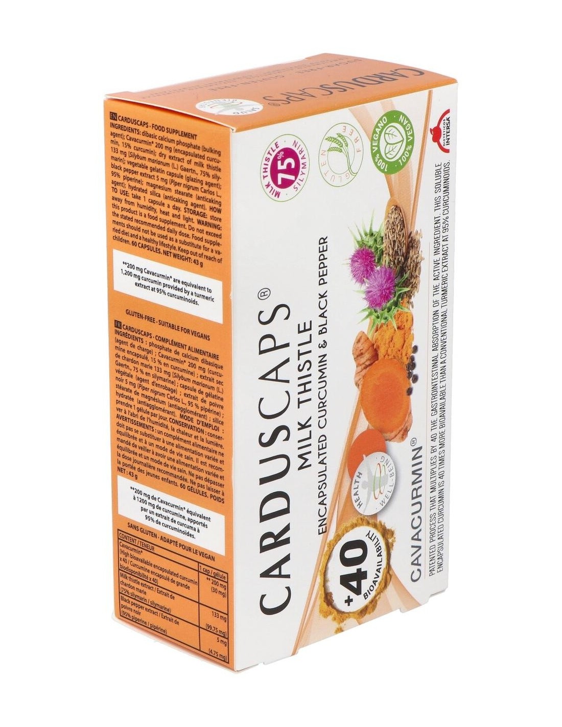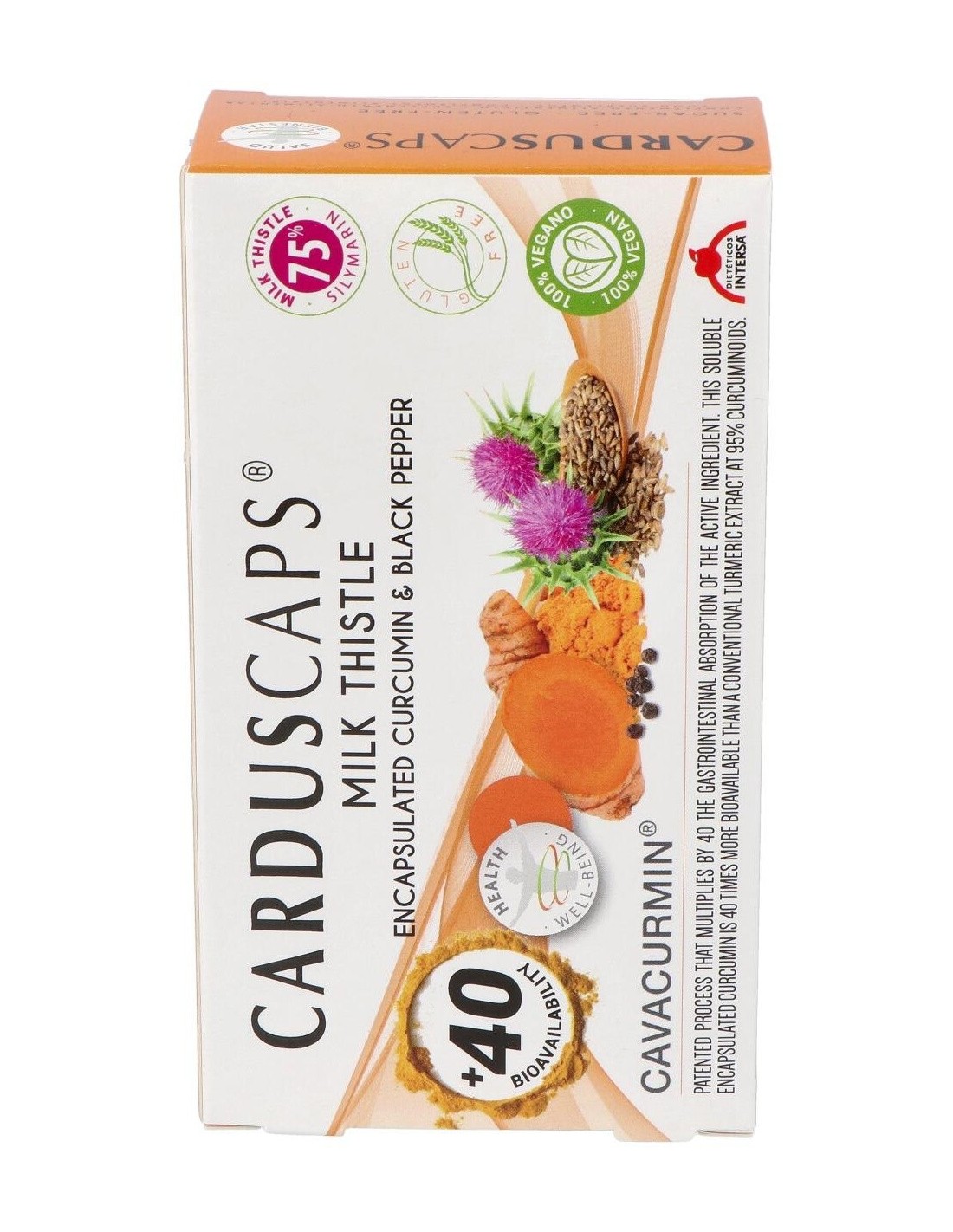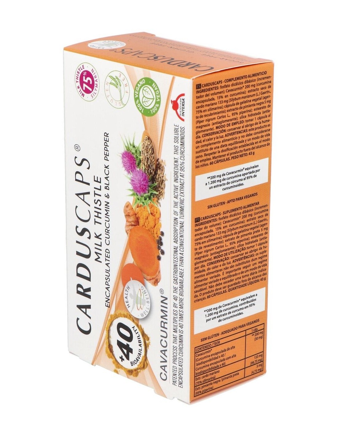 Fosfato dicálcico dibásico (incrementador de volumen): Cavacurmin® - 200 mg (curcumina encapsulada, 15% en curcumina): extracto seco de cardo mariano - 133 mg [Silybum marianum (L.) Gaertn.], 75% en silimarina: cápsula de gelatina vegetal (agente de recubrimiento): extracto de pimienta negra - 5 mg (Piper nigrum Carlos L.), 95% piperina: estearato de magnesio (antiaglomerante): sílice hidratada (antiaglomerante).