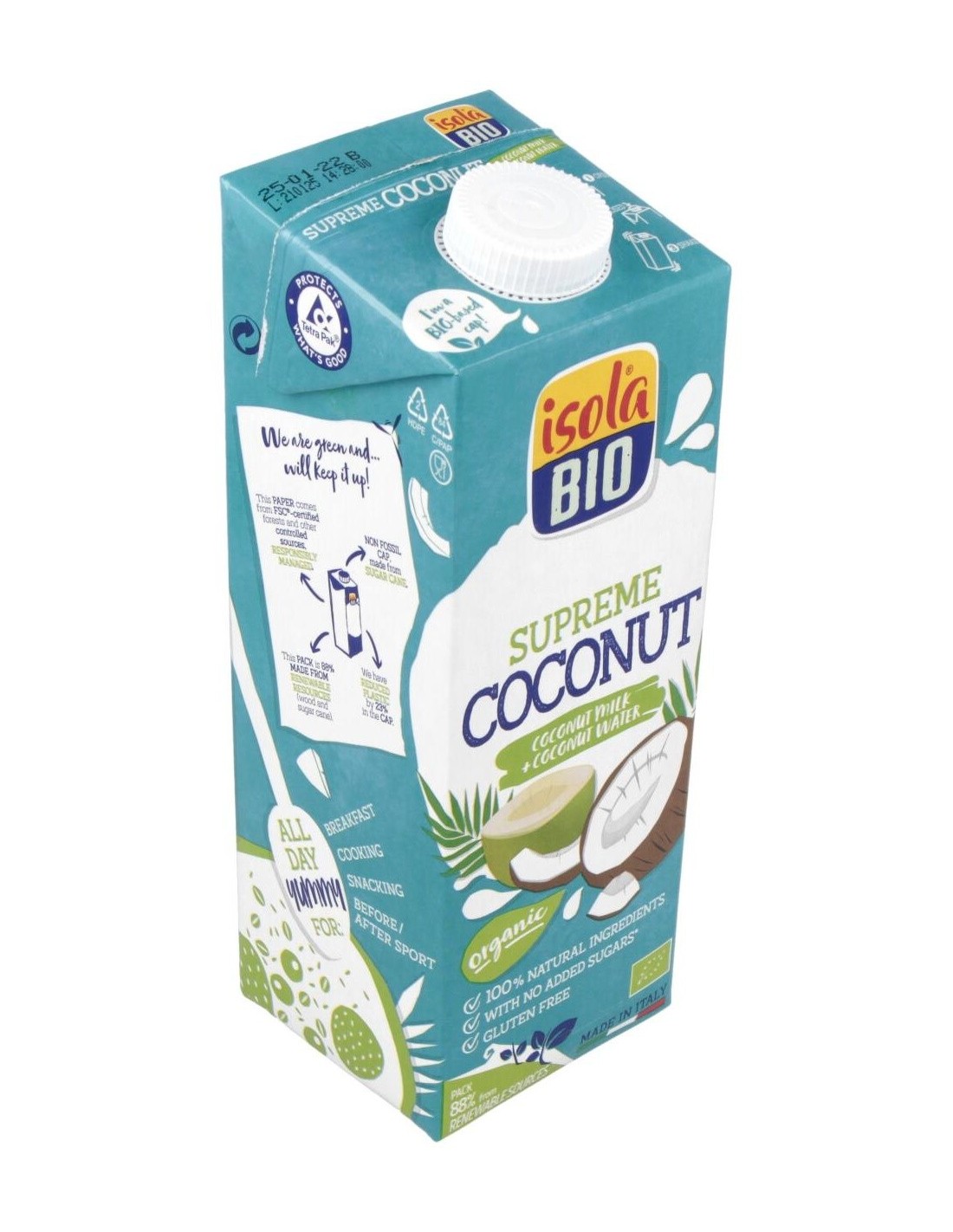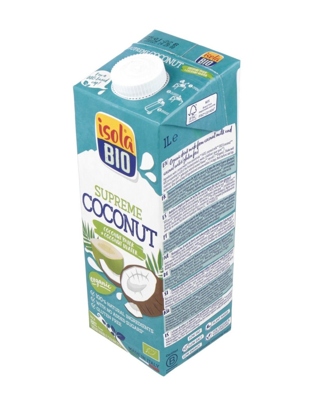 ISOLA BIOLa Bebida Vegetal De Coco Supreme 1Lt de Isola es una bebida vegetal para personas que buscan una alternativa natural y ligera. Ofrece sabor suave y textura cremosa gracias a su elaboración con coco seleccionado.