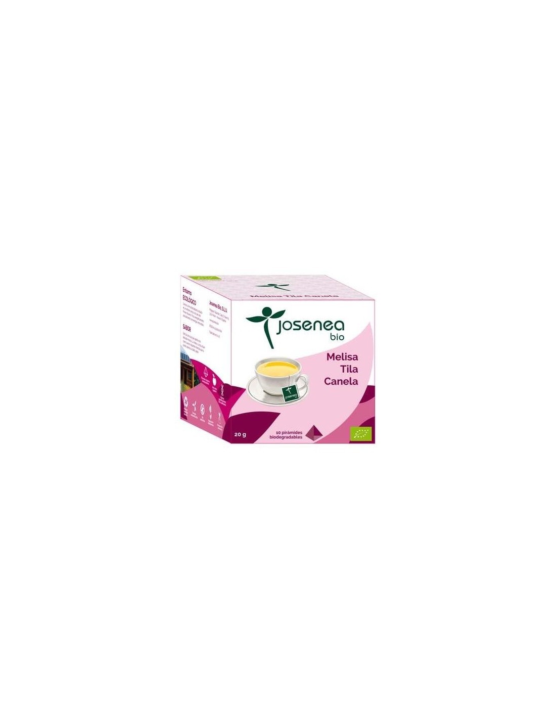 Josenea Melisa Tila Canela BIO caja 10 pir infusión a base de una delicada mezcla con melisa, tila y canela que proporciona relajación suave mientras que la canela le da un cálido sabor agradable.