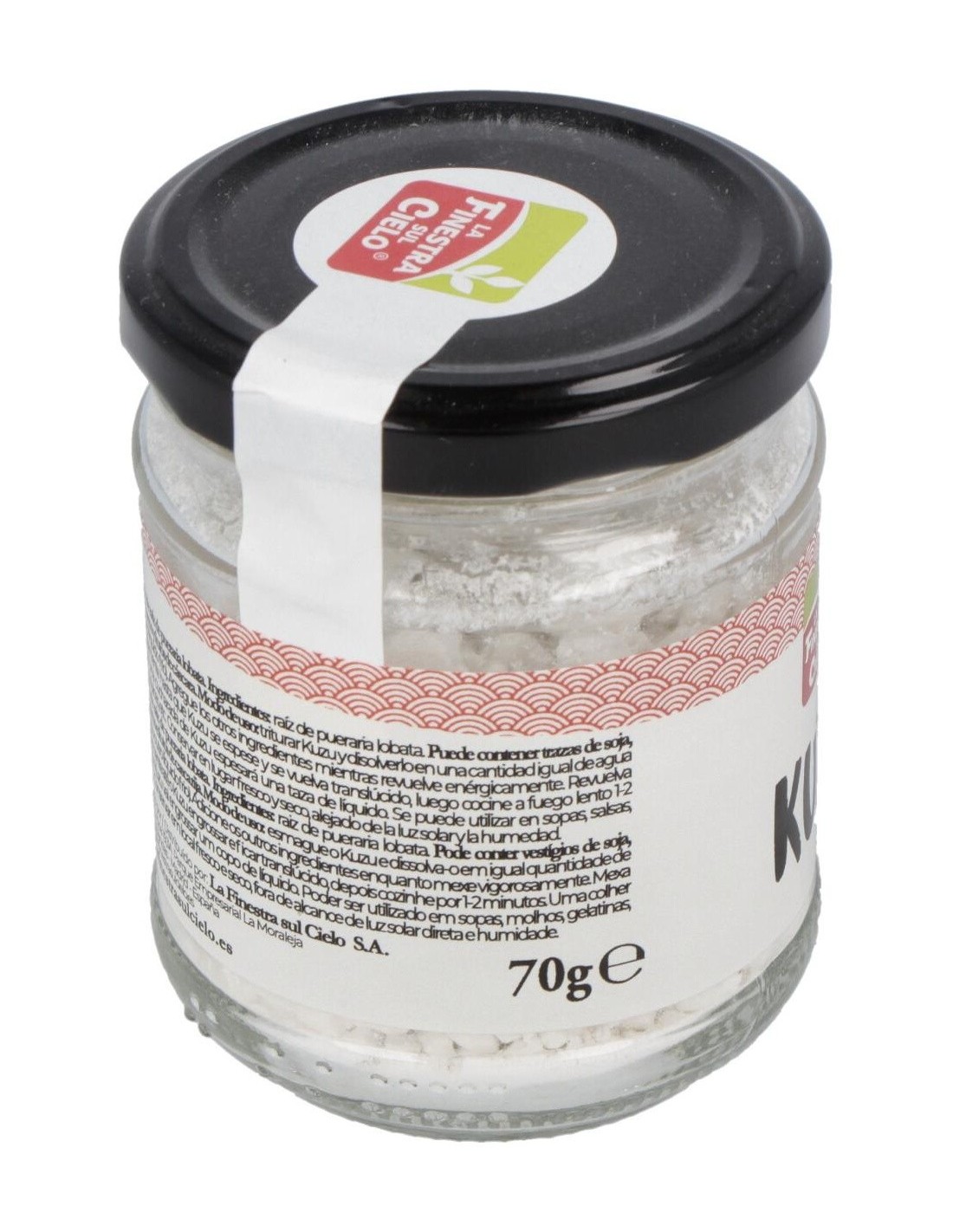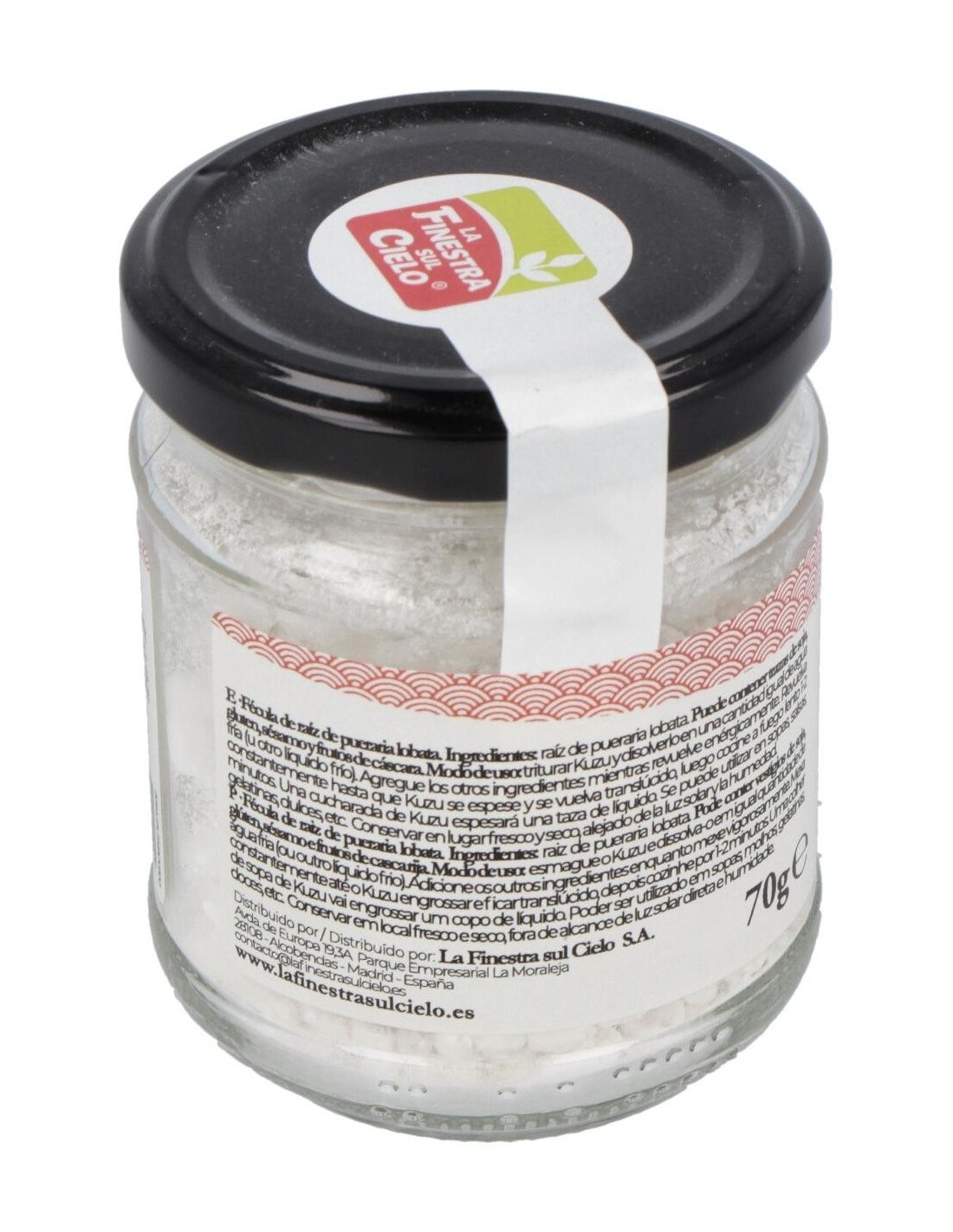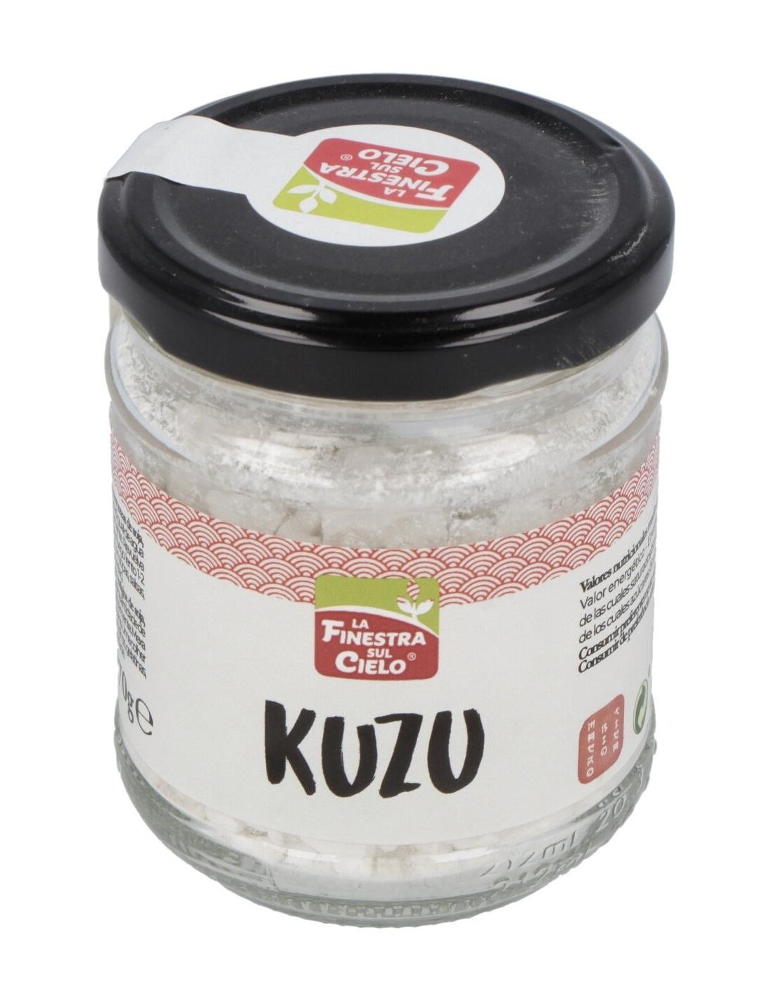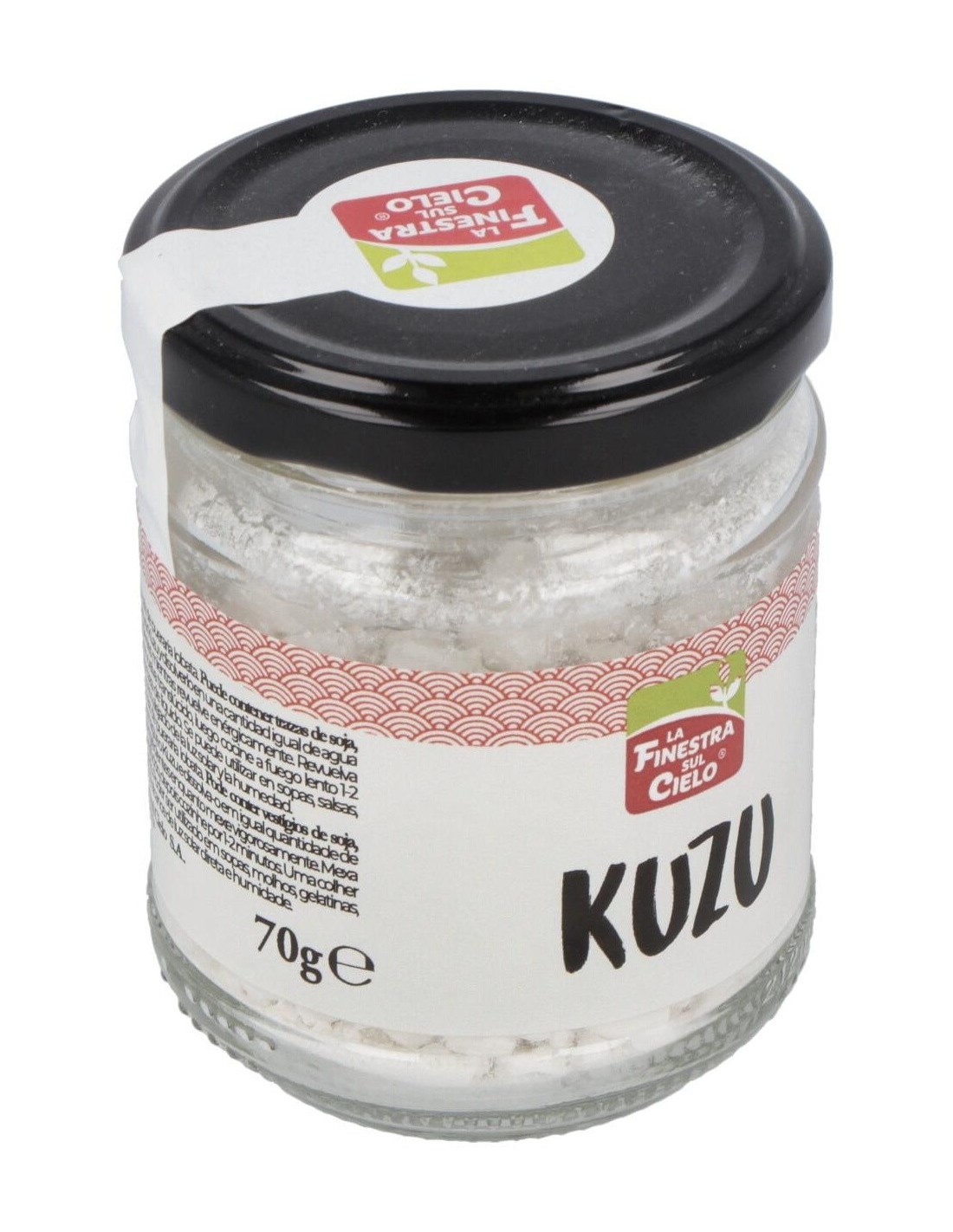 LA FINESTRA SUL CIELOEl Kuzu es la fécula obtenida de la raíz de una planta selvática, empleada para preparar jaleas de fruta y bebidas especiales como el famoso Ume-Sho-Kuzu. Se puede utilizar en sopas, salsas, gelatinas, dulces, etc.