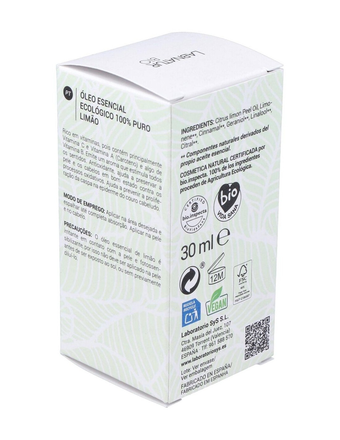 - Aceite esencial de limón certificado como bio, garantizando un origen natural y controlado.