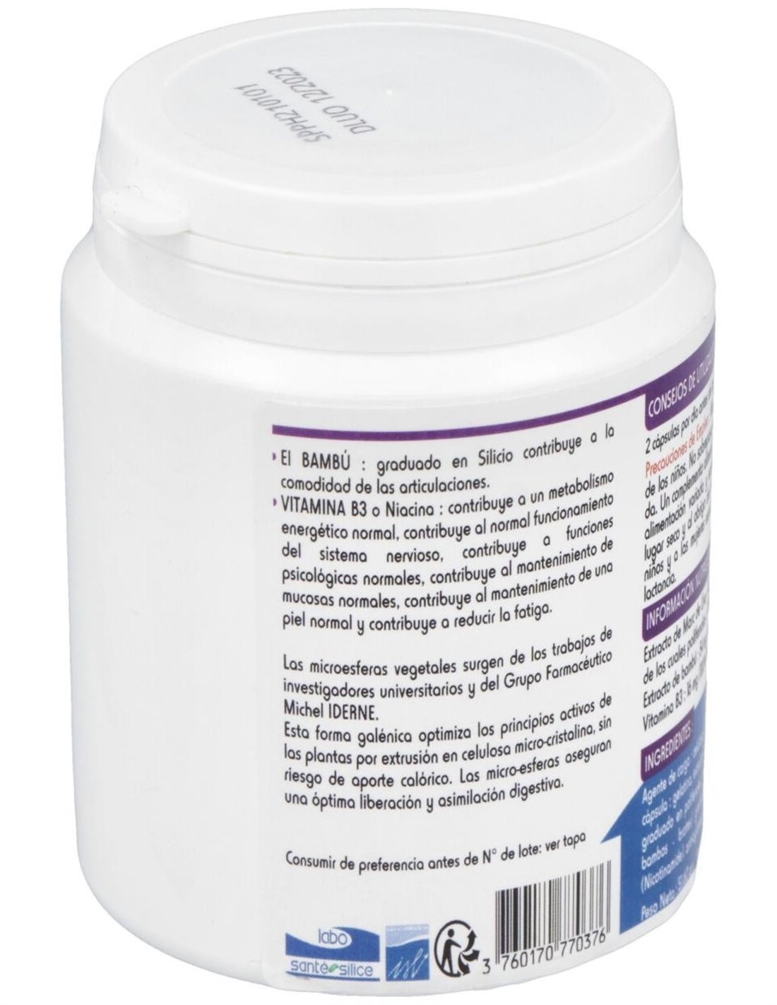 Complemento alimenticio de la marca Silacaps, formulado con taninos y polifenoles procedentes del fruto de la vid. Los polifenoles extraídos de la uva roja, en particular la Delphidina, producen un efecto dilatador mediante la producción de monóxido de nitrógeno. Ayudan a las fibras colágenas del organismo (tejido articular, muscular, paredes vasculares, dermis), y refuerza la comunicación inter-celular.
