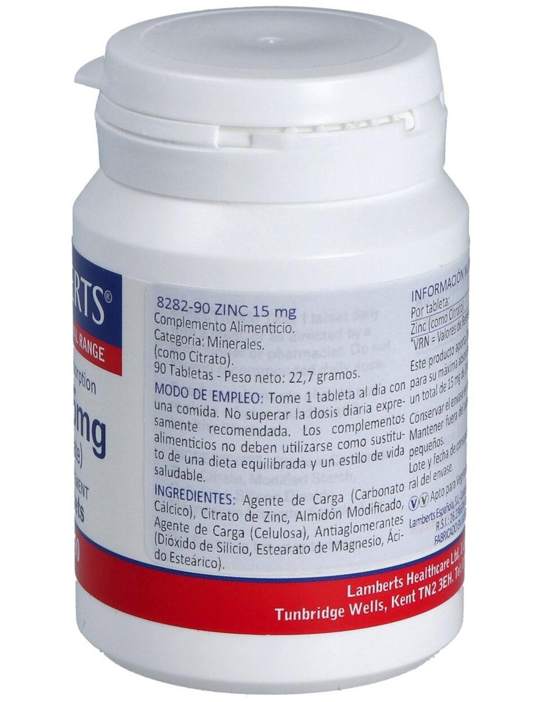Zinc 15 mg (Como citrato) 90 Tabs. de Lamberts