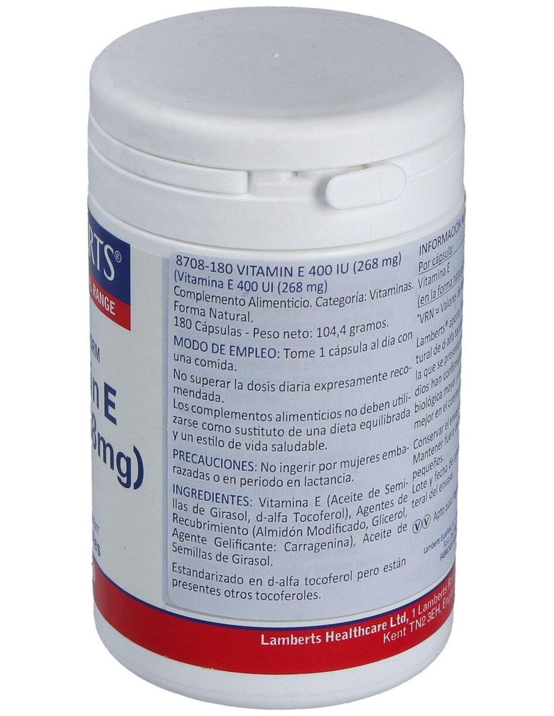 Vitamina E Natural 400 UI 180 Caps. de Lamberts