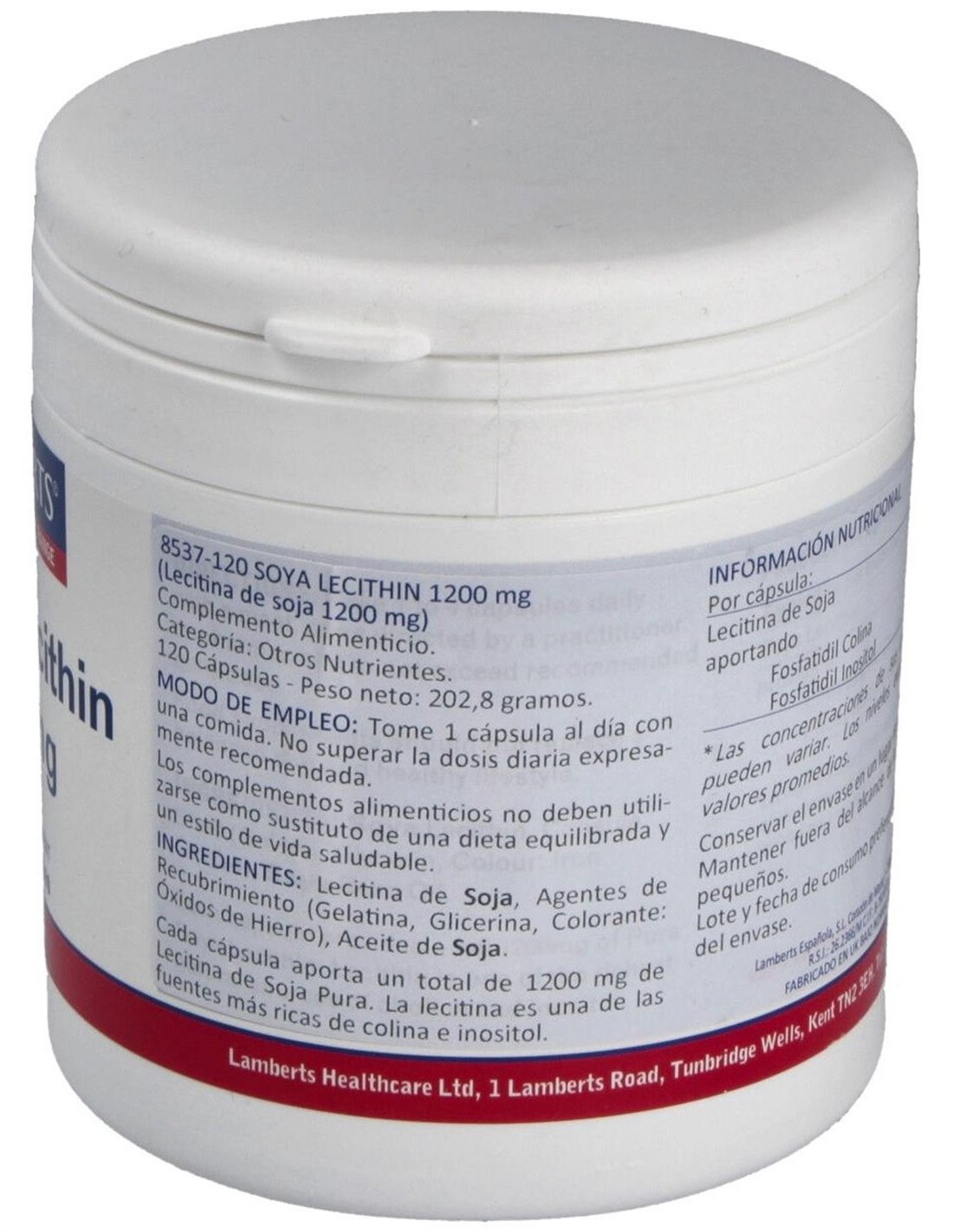 Lecitina de Soja 1200 mg 120 Caps. de Lamberts