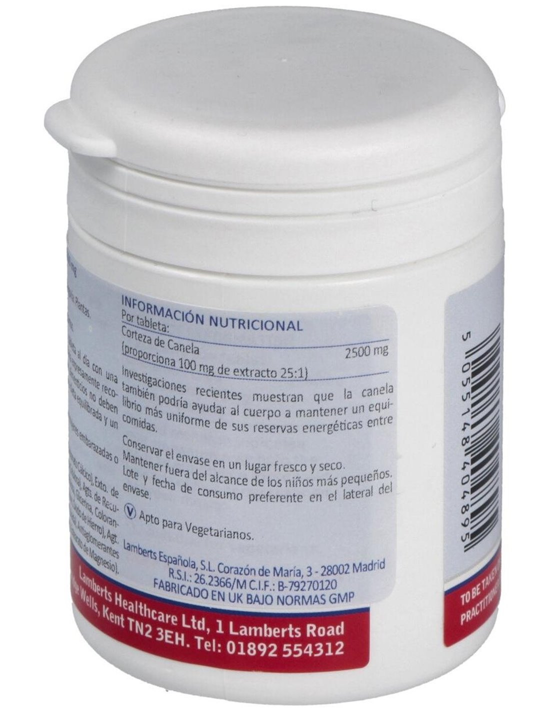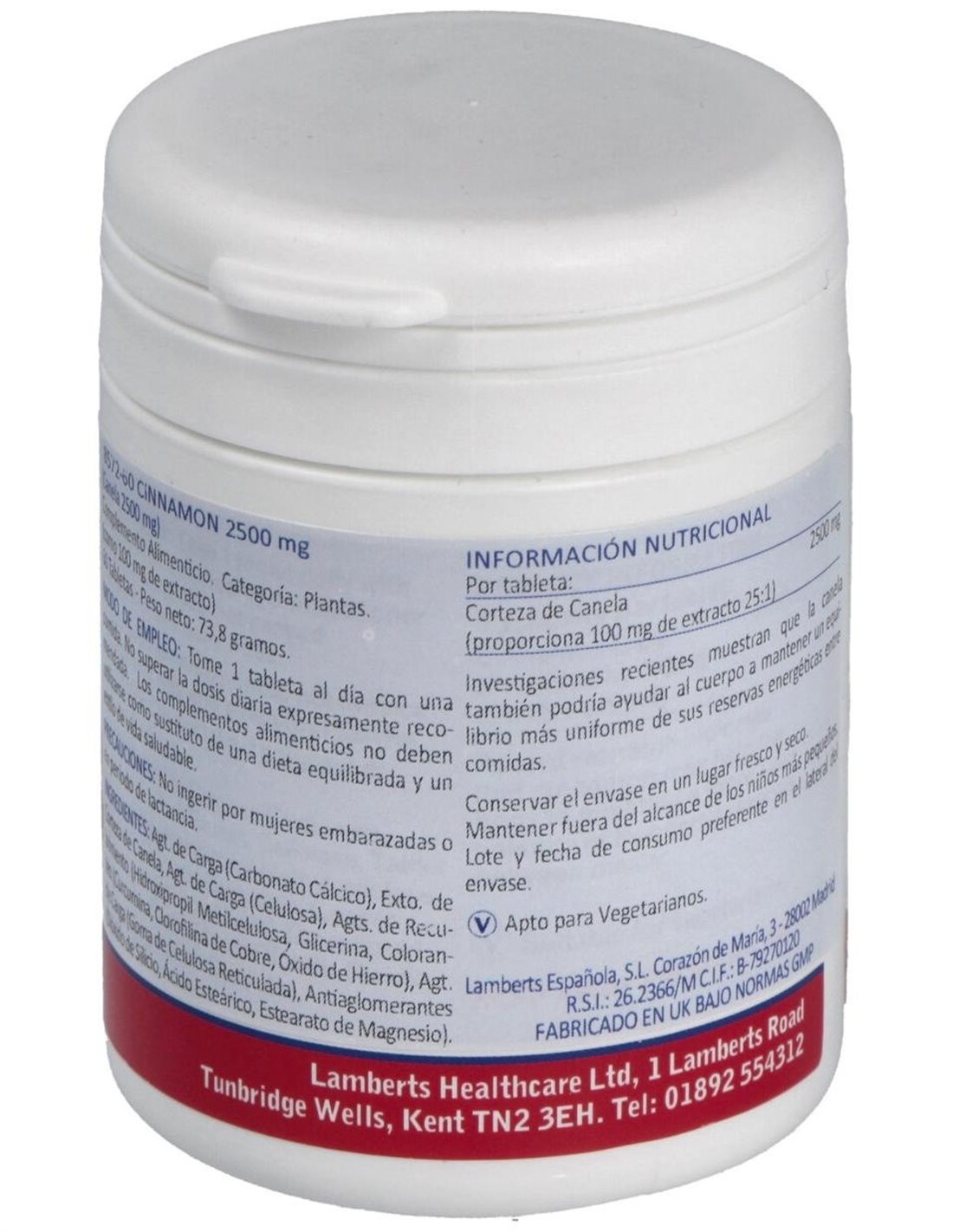 Canela 2500 mg (Cinamaldehído del 62% 73%) 60 Tabs. de Lamberts