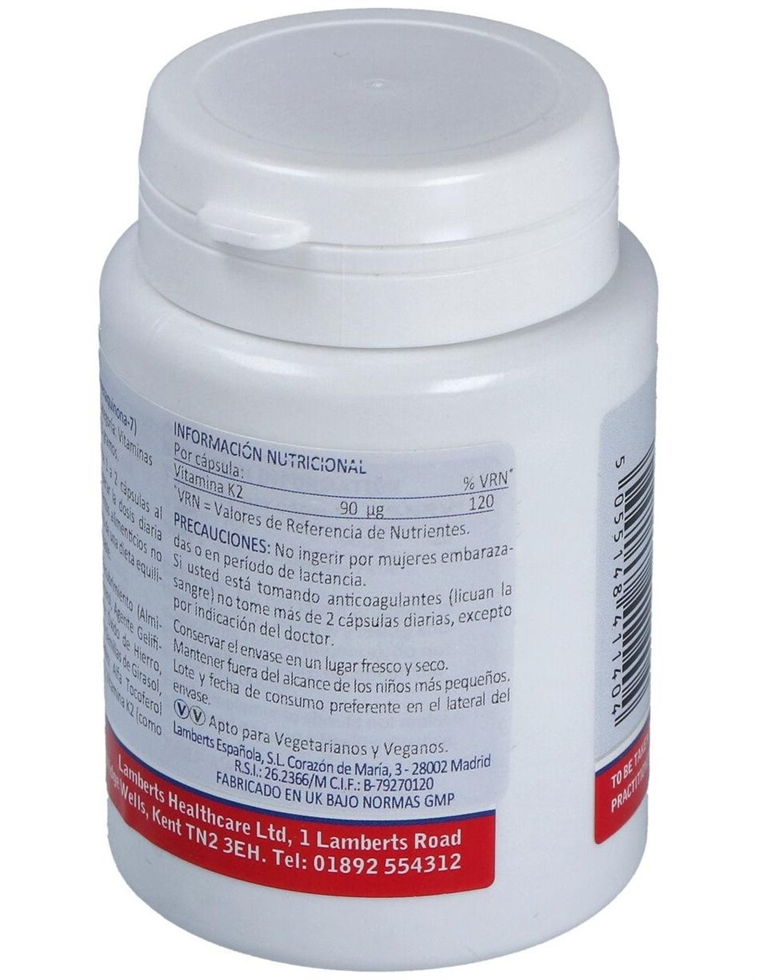 Vitamina K2 (como MK-7) 90 µg 60 Caps. de Lamberts