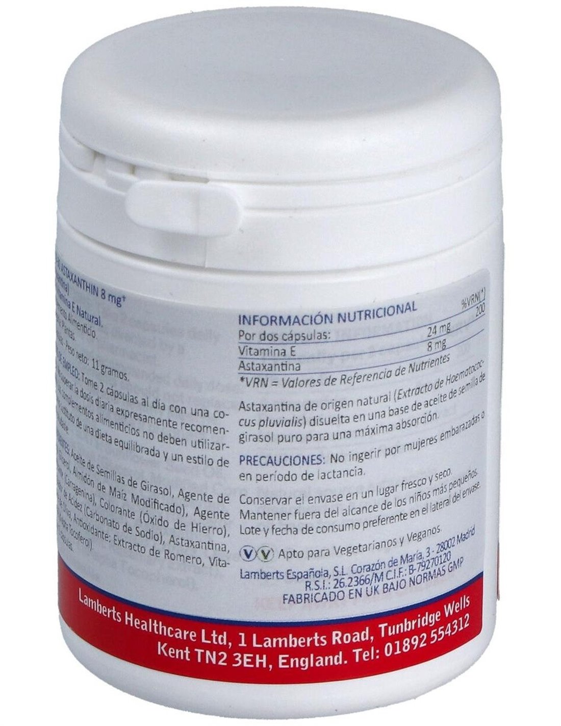Astaxantina 8 mg con Vitamina E Natural 30 Caps. de Lamberts